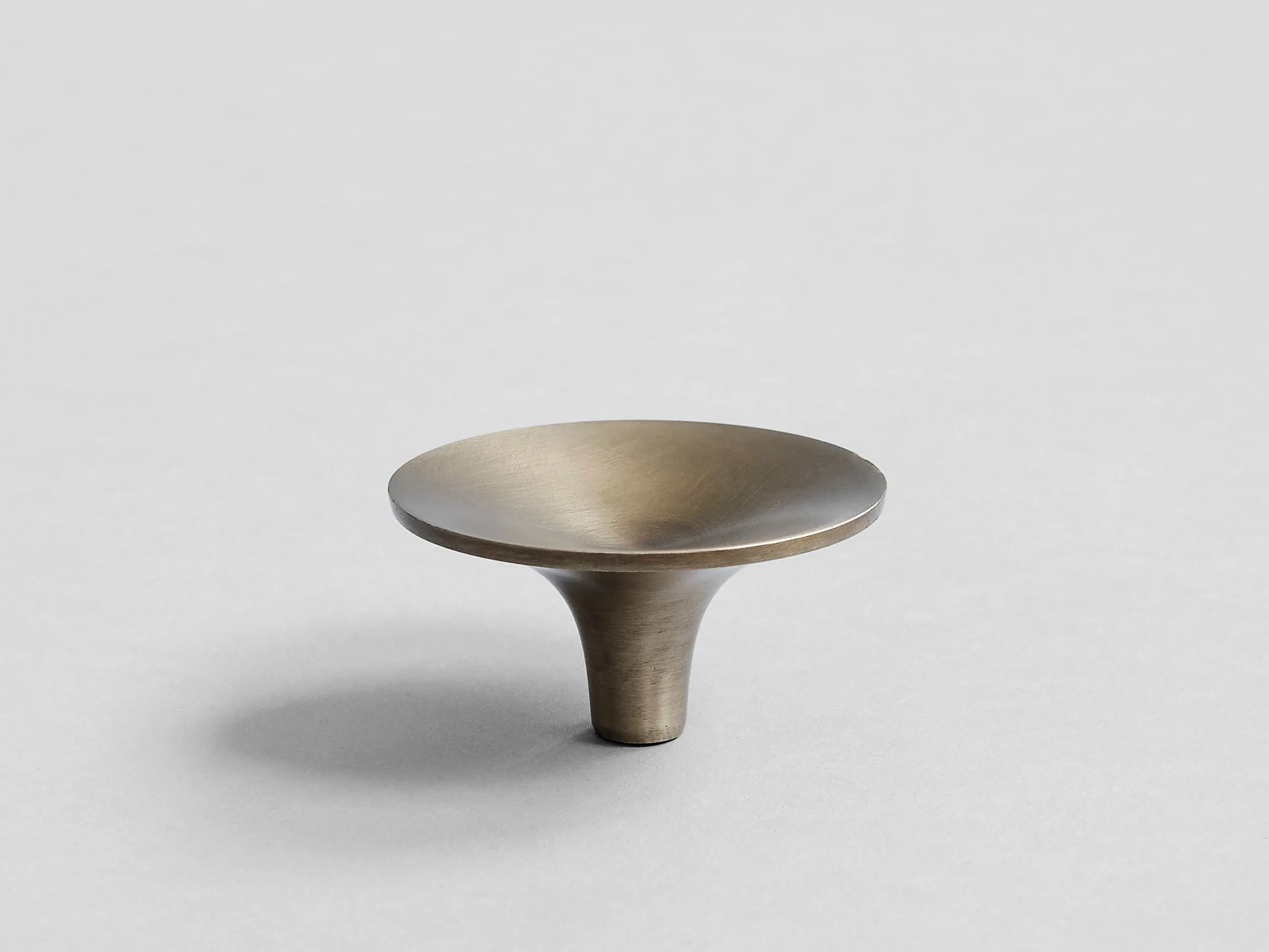 The HIHAT MAXI brass furniture knob draws inspiration from musical instruments, specifically the cymbal, offering a unique and playful design element. Crafted from spun solid brass, these knobs develop a rich patina over time, enhancing their aesthetic appeal with continued use. Ideal for furniture manufacturers, designers, and repair specialists, these high-quality furniture fittings serve as durable components for various projects. They are suitable for modern furniture assembly, providing customizable options for furniture pieces. Sold in sets of two, these knobs are perfect for those seeking replacement hardware or looking to incorporate durable furniture components into their designs.