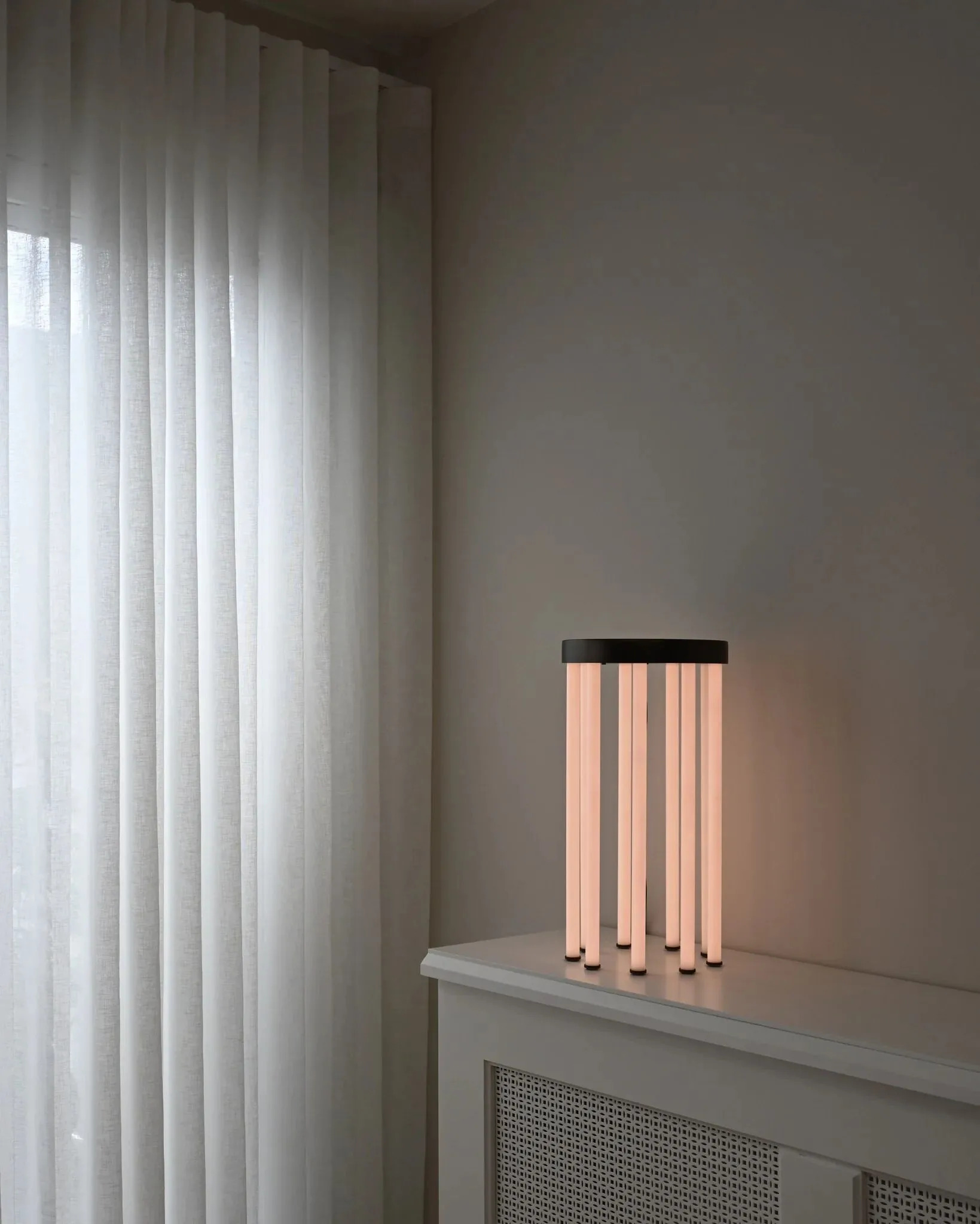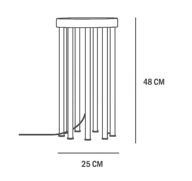 Inspired by the vibrant 80s neon design era, the NEON table seamlessly blends functionality and style, serving as both a side table and a floor lamp. Its bronze-plated tabletop is supported by nine illuminating legs crafted from white acrylic tubes, offering a unique touch to any setting. Equipped with an integrated LED light source at Kelvin 2200, it provides a warm and inviting ambiance. The table's lightweight construction allows for easy repositioning, and it connects effortlessly to a nearby power source via a black cable cord. All metal components are finished in bronze, ensuring a sleek and modern aesthetic suitable for dining tables, café chairs, and conference room furniture. Ideal for restaurants, coworking spaces, and educational institutions, this piece combines modern design with practical functionality.