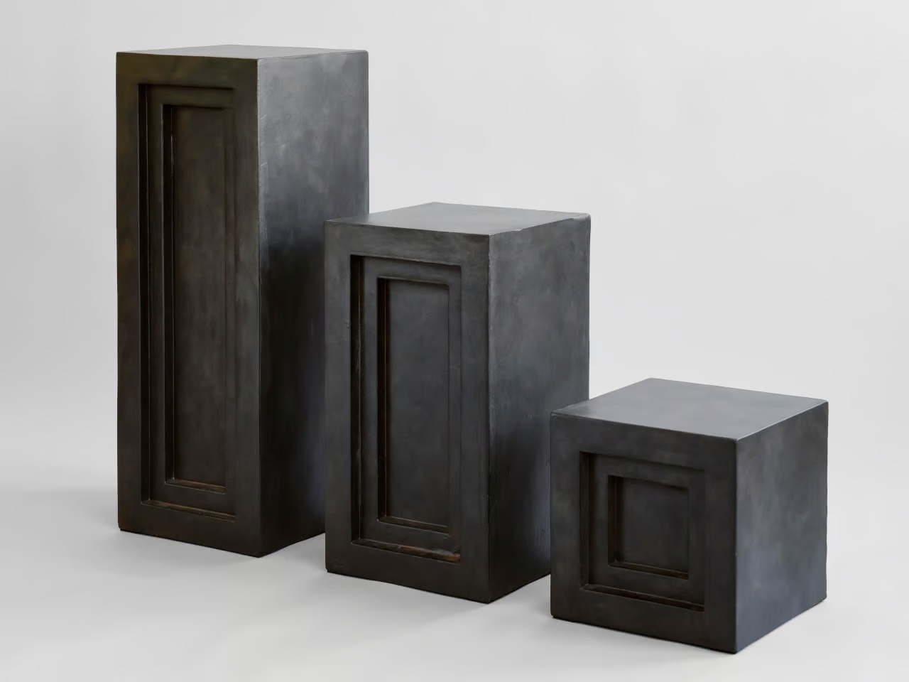 PODIUM MEDIO offers a versatile platform for showcasing modern wall art, luxury vases, or decorative cushions in sophisticated settings. Drawing inspiration from architectural façade details, each piece features a carved relief on two opposing sides, creating dynamic shadow play that shifts with the light. This customizable wall décor can be positioned horizontally or vertically, either against a wall or as a freestanding element, thanks to its design without a defined backside. Available in three distinct heights, it seamlessly integrates into minimalist home decoration ideas, serving as a stylish decorative element or functional side or coffee table. Ideal for hotels, retail stores, boutique spaces, lifestyle retail stores, and residential designers seeking luxury home accessories cushions and modern wall art and prints.