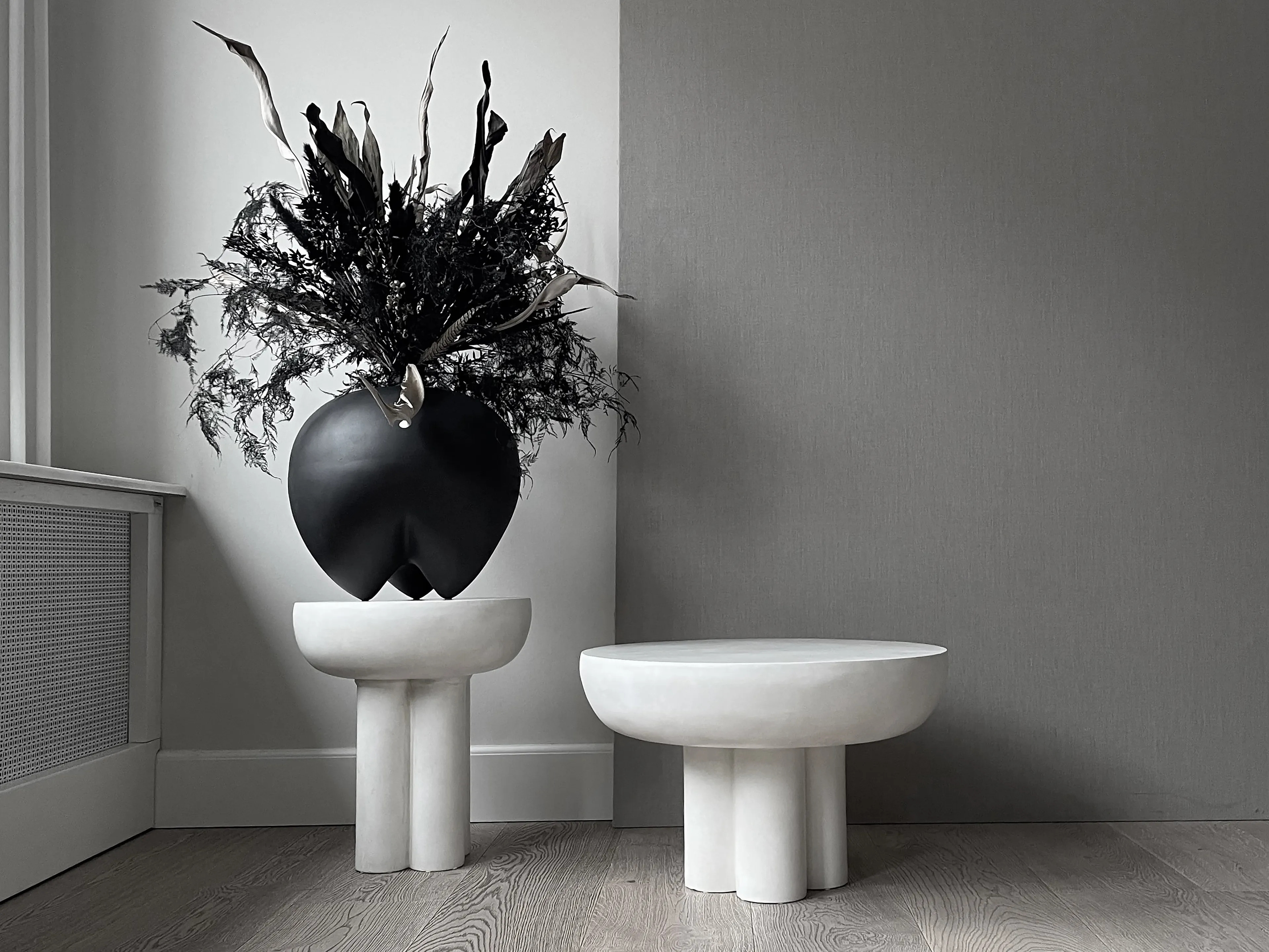 The SUMO BIG Vase draws inspiration from the human form and the traditional Japanese sport of Sumo, featuring a bold, voluminous design balanced on slender, pointed legs. This collection explores the juxtaposition of classic vase silhouettes with artistic, abstract elements, challenging conventional perceptions of vase design. Each piece in the SUMO collection stands as an individual artistic object, yet collectively they form a cohesive family. The vases offer a variety of openings, from traditional narrow styles to unique double and deeply carved designs. Hand-glazed for a natural finish, slight color variations may occur. While not entirely waterproof, a bag for fresh flowers is included. Ideal for enhancing spaces with modern wall art, luxury vases, and minimalist home decoration ideas, this piece complements stylish decorative settings in hotels, retail stores, and boutique spaces.
