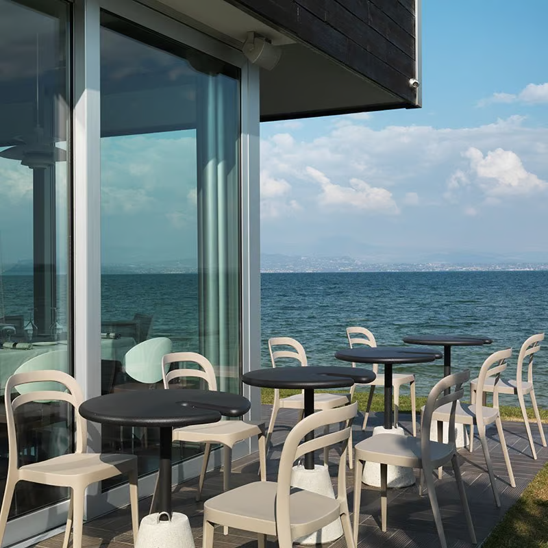 The JULIE chair offers a blend of timeless style and modern design, making it an ideal choice for restaurants, conference rooms, coworking spaces, cafés, event venues, and educational institutions. Crafted using air molding technology, this stackable chair is made from durable, UV-resistant polymer, ensuring longevity in both indoor and outdoor settings. Available in a range of colors, including black, white, violet blue, cherry red, sand, and powder pink, JULIE can be customized with a cushion for added comfort. Choose between a monochrome or bi-color design to suit your space's aesthetic. Its ergonomic design and durable seating make it a versatile addition to any dining or conference room furniture collection.