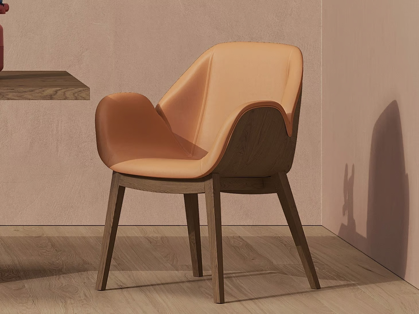 The LIPS Leather Easy Chair offers a sophisticated blend of style and comfort, ideal for hotels, cafés, lounges, and waiting rooms. Its unique design features two soft, embracing shells, providing an ergonomic seating experience. Crafted from curved wood, the chair is fully padded for optimal comfort. Available in a variety of custom upholstery options, including fabric, eco-leather, and genuine leather, it complements diverse interior settings. The rear side showcases stained ash wood in various finishes, while the legs are available in both wood and steel, offering flexibility in design. Choose from natural ash, stained walnut, or grey finishes, with steel options in painted anthracite, white, or dove-grey, as well as chromed or iron grey. Upholstery choices include velvet, boiled wool, and eco-leather, making it a versatile addition to modern lounge furniture collections.