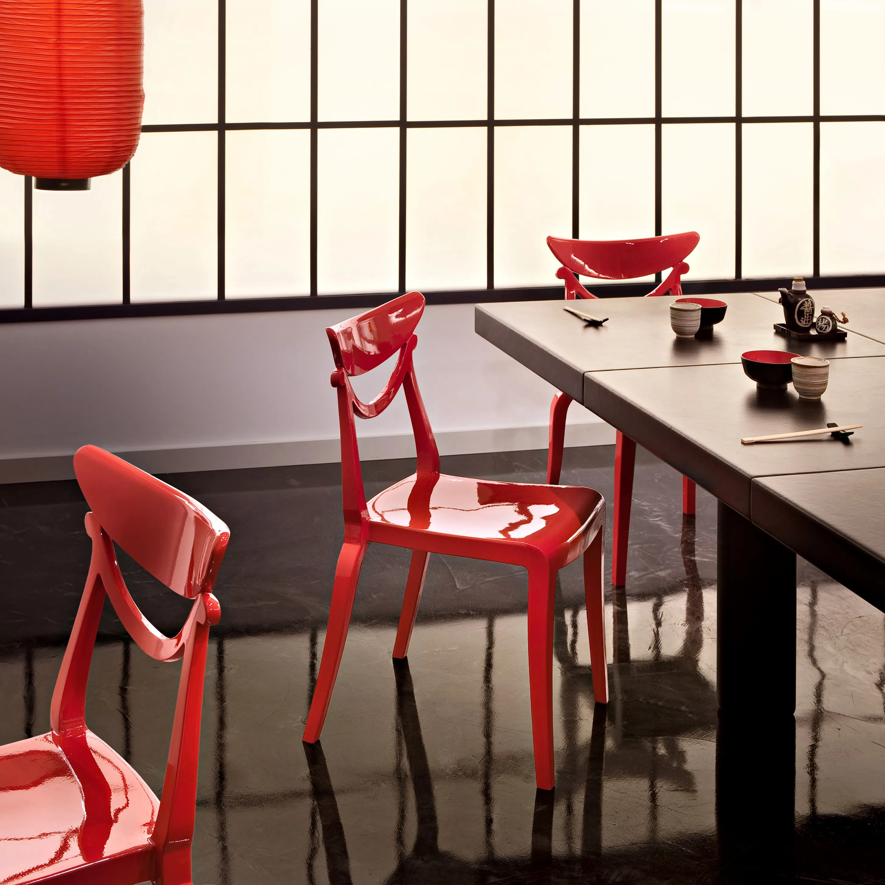 The MARLENE Nylon® chair offers a versatile seating solution for restaurants, conference rooms, coworking spaces, cafés, event venues, and educational institutions. Crafted from durable nylon, it is available in white, red, or black, with options for upholstered cushions and dressings. The chair's modern design combines the elegance of traditional wood chairs with contemporary materials, featuring a sleek silhouette and intricate detailing. Its stackable nature ensures efficient storage, making it ideal for dynamic environments. The chair's UV-resistant properties and advanced gas molding technology enhance its durability, suitable for both indoor and outdoor use. Available in five transparent polycarbonate colors reminiscent of precious stones and four vibrant nylon hues, the MARLENE chair seamlessly integrates into any setting, offering both functionality and aesthetic appeal.