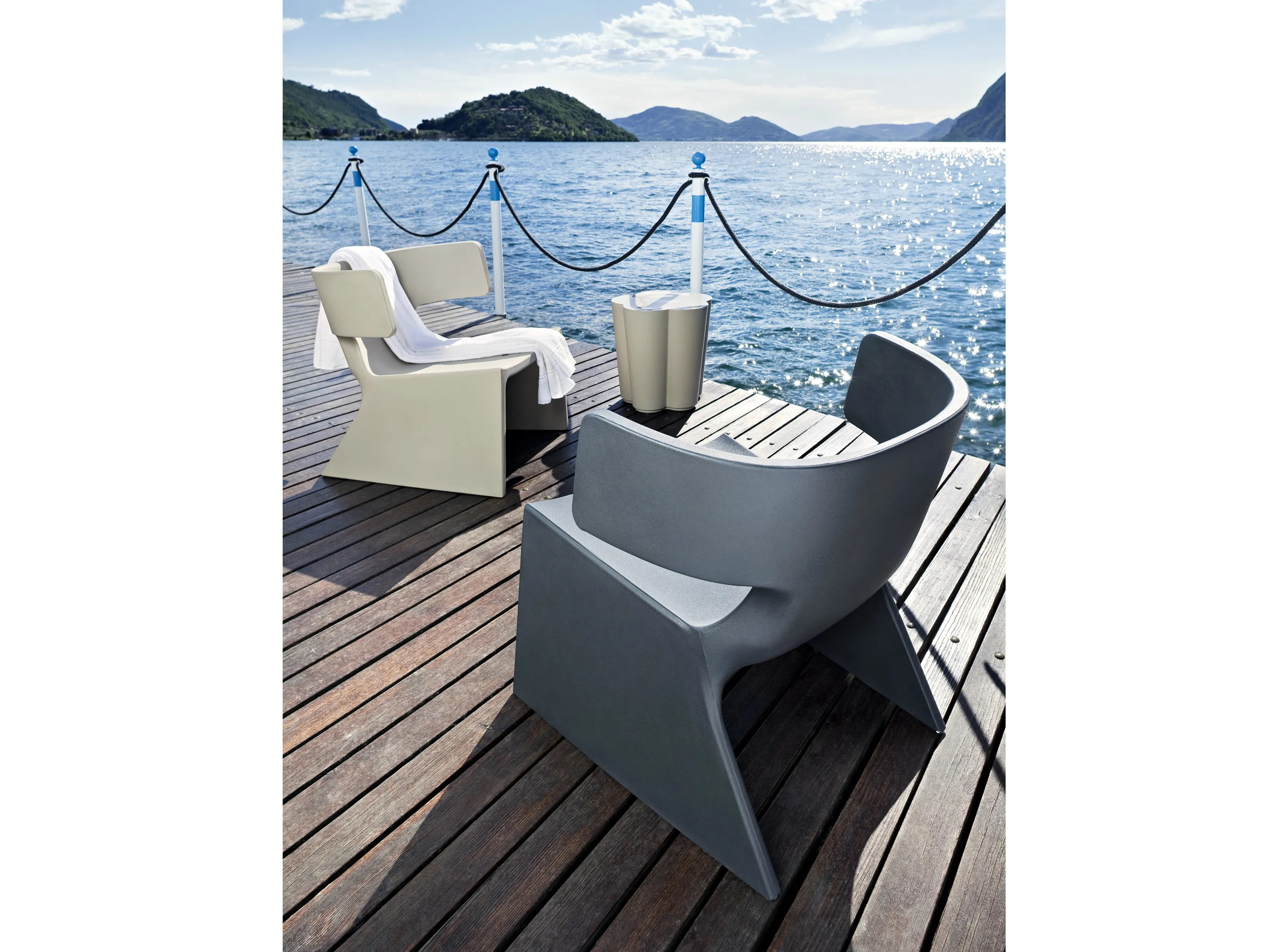 The MEG Polyethylene Armchair features well-proportioned lines and an enveloping shell that doubles as armrests, offering a blend of style and functionality. Ideal for hotels, cafés, lounges, and waiting rooms, this armchair is crafted from durable colored polyethylene, making it suitable for outdoor settings like terraces and gardens. For indoor environments, the padded version offers a soft, comfortable seating solution, perfect for residential interior designers seeking luxury armchairs. With options for custom upholstery, this piece seamlessly integrates into modern lounge furniture collections. Its ergonomic design and compact form make it a versatile choice for both spacious and small areas, providing customizable seating solutions for various settings.