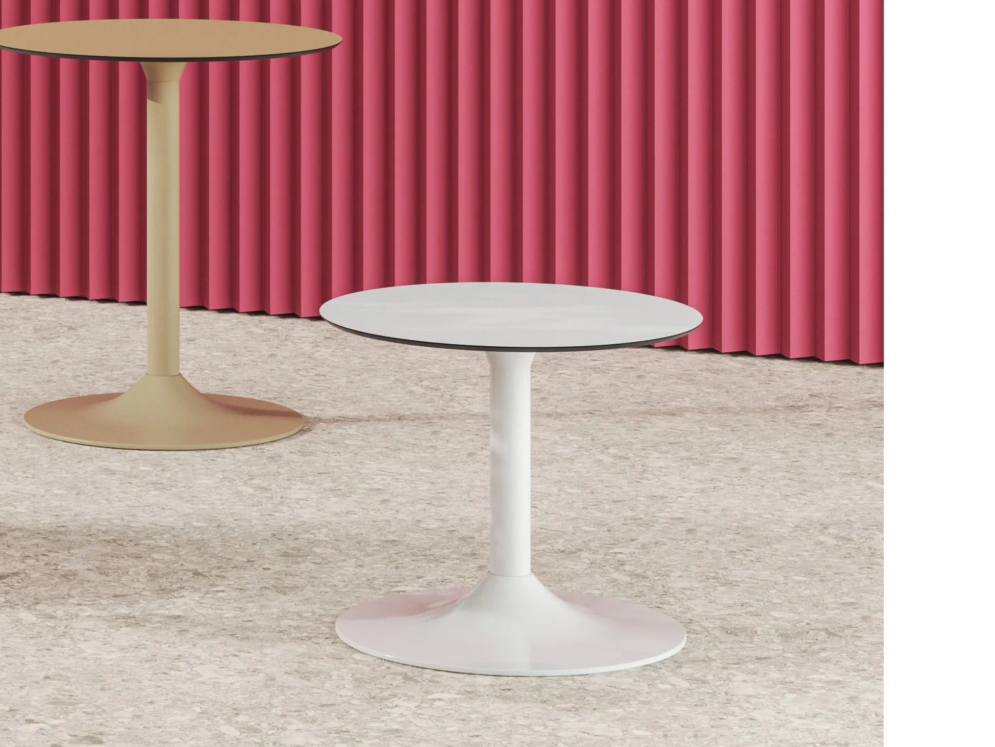 The MOJITO low coffee table features a round Ø 450 mm aluminum base and a top available in melamine with a 20 mm ABS edge, HPL, or resin. With a top diameter of Ø 600 mm and a height of 500 mm, this table is designed for versatility in various settings. Its sleek, modern design is available in white, anthracite, or matte sand, making it suitable for both indoor and outdoor environments. The lightweight construction ensures easy mobility, while the choice of black or white HPL or colored resin tops offers customization options. Ideal for restaurants, conference rooms, coworking spaces, cafés, and educational institutions, it complements dining tables, café chairs, and other conference room furniture.
