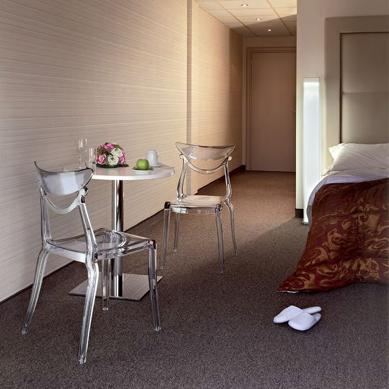 The PRISCILLA round table is designed for versatile use in restaurants, conference rooms, coworking spaces, cafés, event venues, and educational institutions. This modern design table features a steel base available in polished or satin finishes, ensuring durability and style. The table tops are crafted from melamine with a 20mm ABS edge, offering both fixed and adjustable height options. For added functionality, the table includes adjustable bungs to maintain a level surface. Optional features include stained glass or solid laminate tops, and an aluminum cross with a tip-up mechanism. This piece complements ergonomic and stackable café chairs, making it an ideal choice for dining tables and conference room furniture.