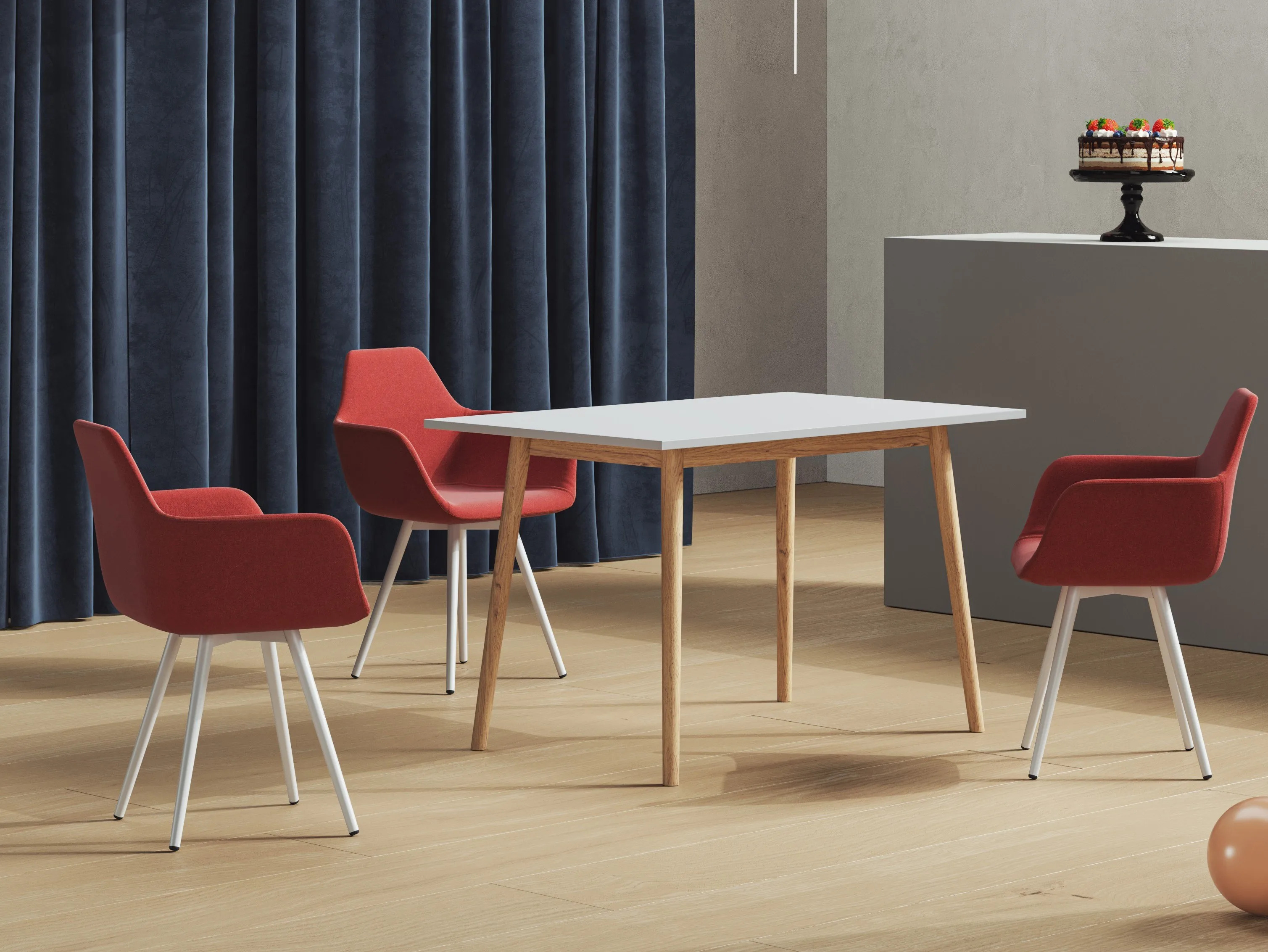 The VIRNA rectangular table offers a versatile solution for various settings, including restaurants, conference rooms, coworking spaces, cafés, event venues, and educational institutions. Its modern design features four beech wood legs with a round section, expertly turned and tapered for enhanced stability. Available in heights of 75 and 105 cm, the frame is designed to accommodate a wide range of tabletop styles, allowing for extensive customization. This adaptability makes it suitable for diverse environments, from dining tables in banquet halls to conference room furniture. The VIRNA collection seamlessly integrates with café chairs and ergonomic, stackable seating options, providing durable and stylish solutions for any space.