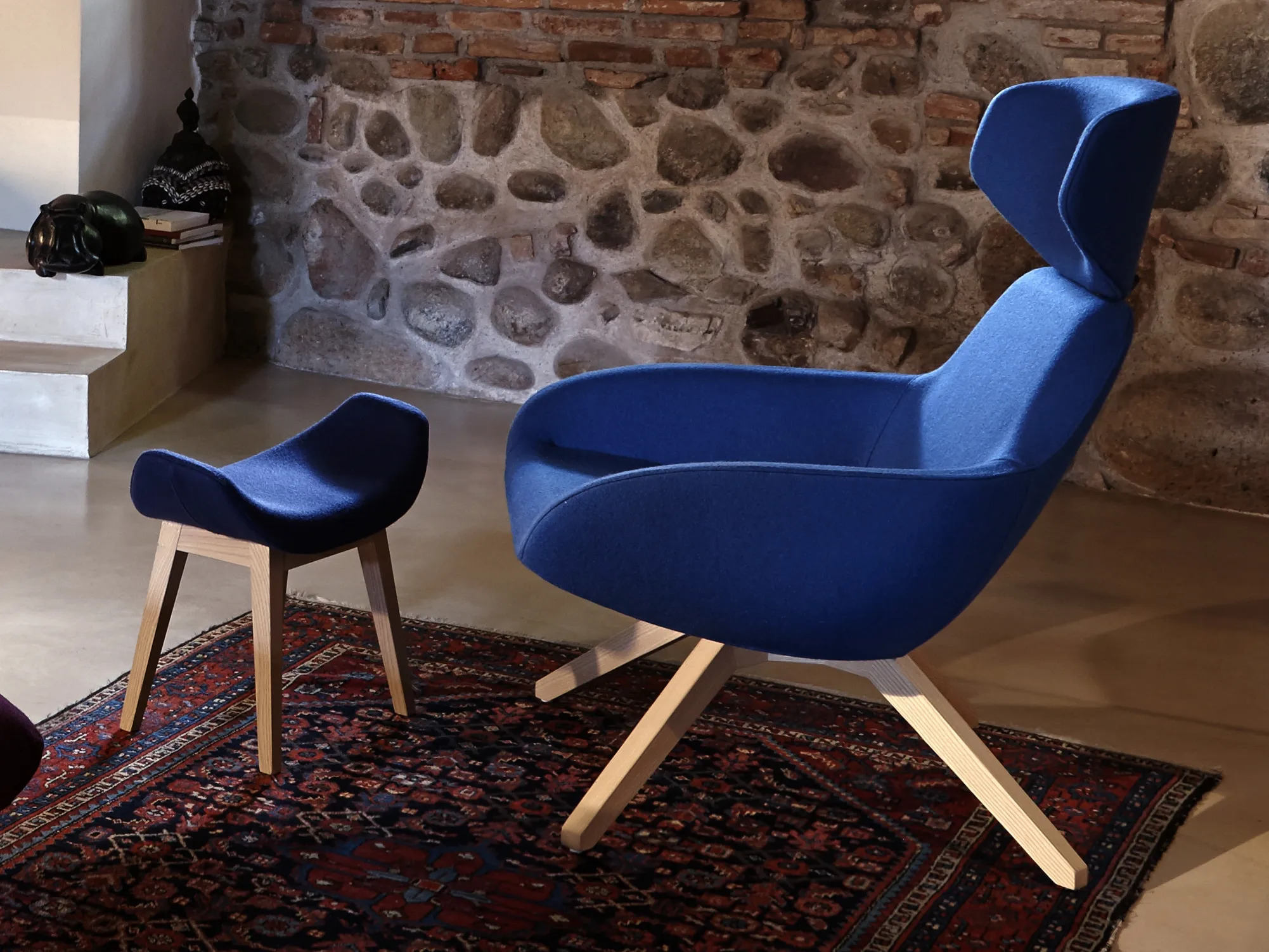 The X Big Foot by Alma Design, launched in 2015, is a versatile fabric footstool designed to complement the X Big and X 2Big armchairs. Its concave and enveloping shapes create a cohesive aesthetic, ideal for modern lounge furniture settings. This piece is lightweight and elegant, featuring a thin yet comfortable padding that enhances its ergonomic design. Suitable for hotels, cafés, lounges, and waiting rooms, it seamlessly integrates with luxury sofas and armchairs, offering a comfortable seating solution. The X Big Foot is also an excellent choice for residential interior designers seeking compact furniture for small spaces. Its customizable upholstery options allow it to fit effortlessly into various modular sofa arrangements, making it a practical addition to any sophisticated environment.
