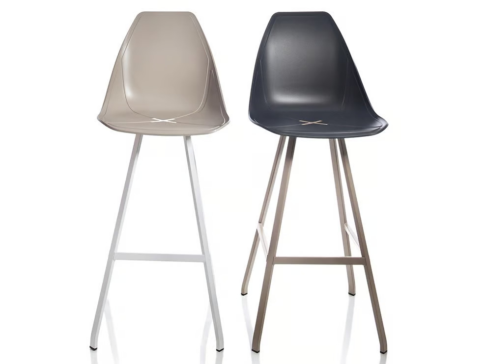 The X SPIDER Stool offers versatile seating options for various environments, including restaurants, conference rooms, coworking spaces, cafés, event venues, and educational institutions. Crafted with a choice of chromed or painted steel, or stained ash wood, this stool features a sturdy four-leg or skid frame design. An inox footrest adds to its durability, making it ideal for high-traffic areas. The seat shell, made from homo-copolymer, is available with an "X" design in contrasting or matching colors, using either wood or plastic materials. Available in two heights, this stool complements modern design tables and provides ergonomic support. Its stackable nature ensures easy storage, making it a practical choice for dining tables and café chairs, as well as conference room furniture.