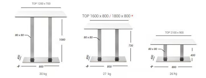 The BASE 405Q is a robust and versatile furniture component crafted from steel and stainless steel, featuring a rectangular base with two squared columns and four ABS feet. It includes a cast iron counterweight coated with epoxy powder and two die-cast aluminum "Star" top fixing crosses. This high-quality furniture fitting is designed to accommodate various tabletop shapes and colors, making it an ideal choice for diverse environments such as restaurants, bistros, bars, pubs, and cafés. Its sleek design and precise proportions offer a modern aesthetic, while the stainless steel covers and squared columns ensure durability. The flat surface of the cover makes it suitable for both indoor and outdoor use, providing a reliable solution for furniture manufacturers, designers, and DIY enthusiasts seeking durable furniture hardware and customizable components.