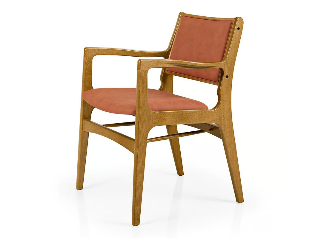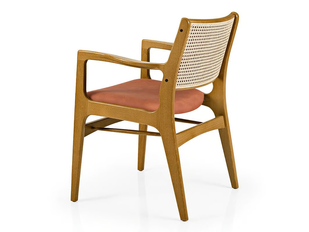 The GEMMA M1084CUUPA is a versatile seating option crafted from solid beech wood, featuring armrests and an integrated cushion for enhanced comfort. Its upholstered backrest in leather, combined with a Vienna straw back, offers a blend of modern design and classic elegance. Part of the GEMMA collection by Francisco Cardoso for MORE CONTRACT, this chair is ideal for dining tables in restaurants, conference room furniture, and café settings. The range includes side chairs, armchairs, and lounge armchairs, all available in various wood stain finishes to suit diverse environments. These ergonomic and stackable chairs provide durable seating solutions for coworking spaces, event venues, and educational institutions.
