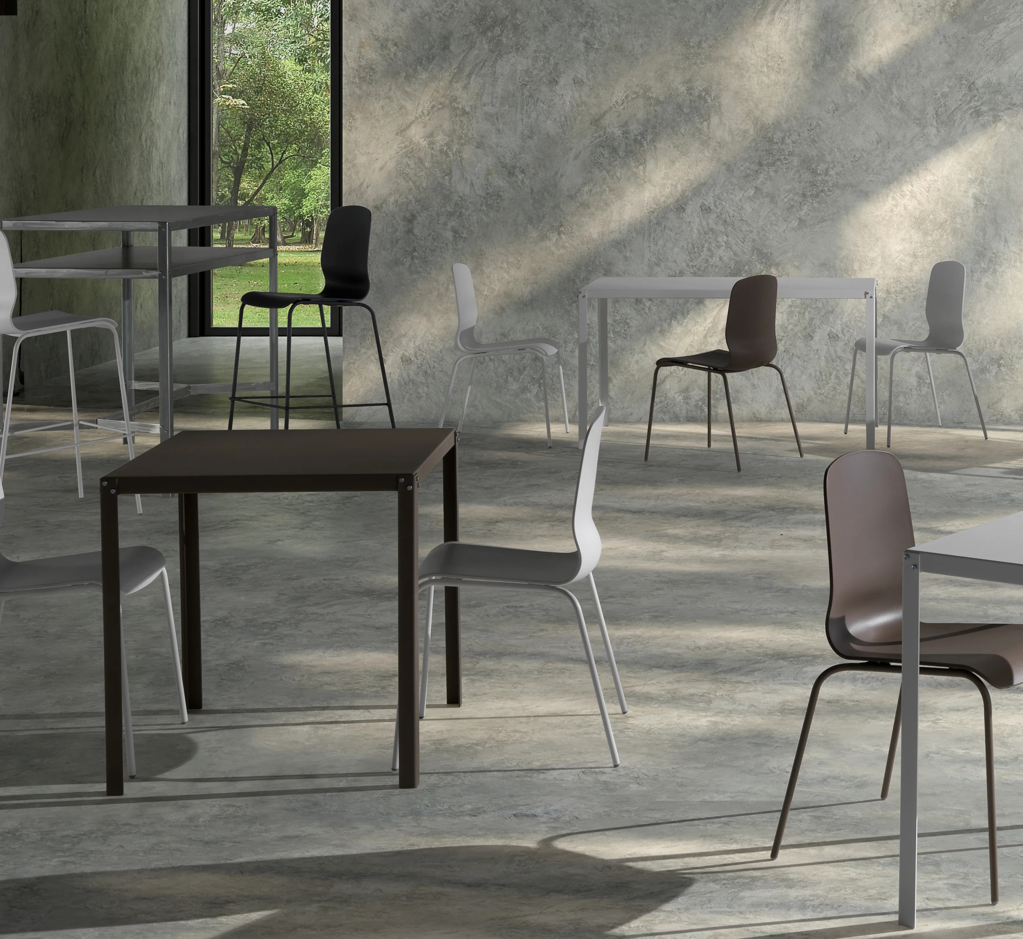 HOPE PLUS offers a versatile solution for dining tables and café chairs, ideal for restaurants, conference rooms, coworking spaces, and more. This collection embraces a modern industrial aesthetic, featuring monochrome shades of gray, black, white, and beige. The design highlights visible screws, L-shaped steel legs, and foldable steel sheet tops. Thanks to its galvanization process, HOPE PLUS is suitable for both indoor and outdoor settings. The collection includes tables of varying heights and shapes, providing customizable options for diverse environments such as educational institutions, event venues, and banquet halls. Its minimalist and robust design aligns with contemporary tastes, ensuring it complements any space. Additionally, the ergonomic and stackable chairs offer durable seating solutions, enhancing the functionality of conference room furniture.