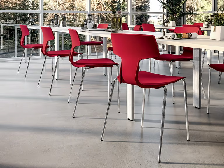 The SPLIT 1 chair is designed for versatile environments such as restaurants, conference rooms, coworking spaces, cafés, event venues, and educational institutions. Featuring an 18 mm metal tube structure, the chair combines a polypropylene shell with a sturdy frame, offering a balance of comfort and durability. The shell is crafted to be soft and flexible, while the legs provide the necessary rigidity for stable seating. This modern design table and chair solution can be customized with a small panel in fabric or eco-leather, enhancing its aesthetic appeal. Available in various color combinations, SPLIT 1 offers stackable, ergonomic seating options that are ideal for dining tables, café chairs, and conference room furniture. Its lightweight design and durable materials make it a practical choice for spaces requiring adaptable and robust seating solutions.
