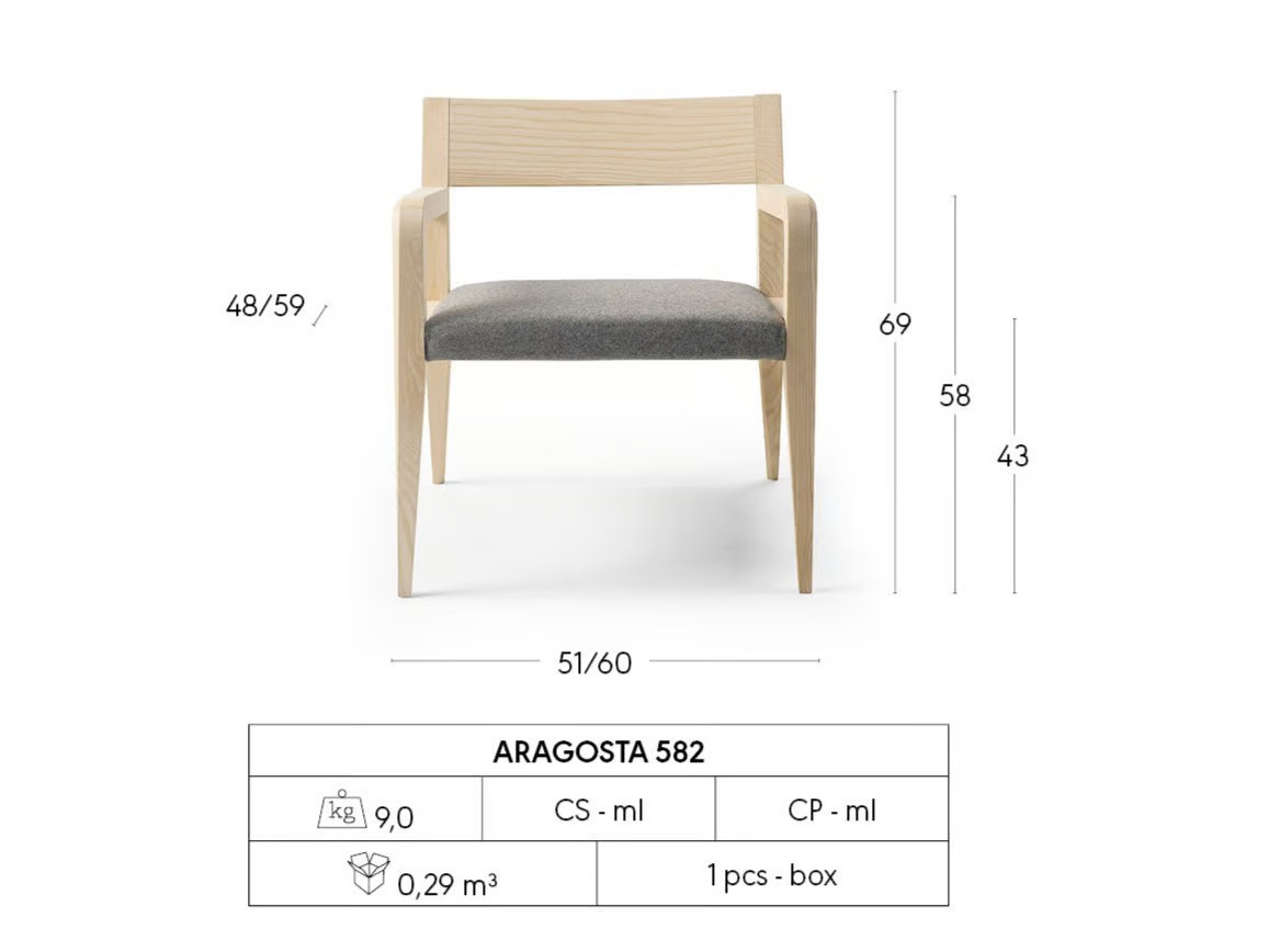 The ARAGOSTA 582 offers a sophisticated seating solution ideal for hotels, cafés, lounges, waiting rooms, and residential interiors. This piece features a sleek design crafted from stained or lacquered ashwood, providing a modern touch to any space. The seat is upholstered in either fabric or leather, allowing for custom upholstery options to suit various design preferences. Its ergonomic design ensures comfort, making it a perfect choice for luxury armchairs and modular sofas in compact spaces. The ARAGOSTA 582 is a versatile addition to any setting, offering both style and functionality.