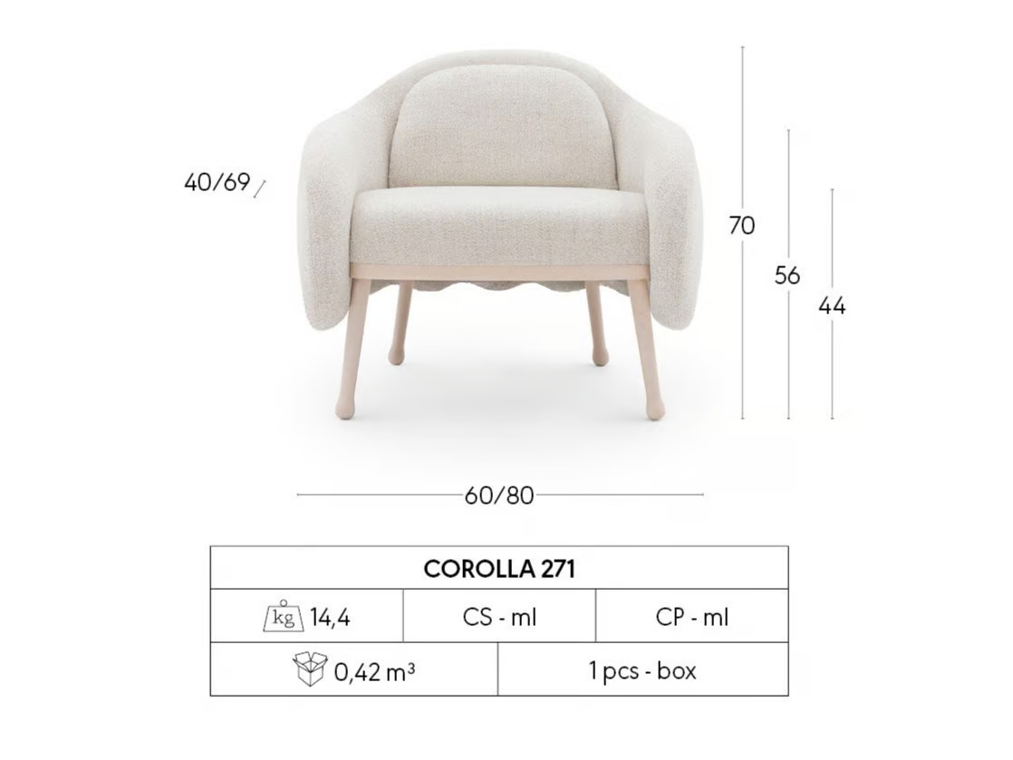 The Corolla 271 offers a sophisticated seating solution, ideal for hotels, cafés, lounges, and waiting rooms. Crafted with a solid beech or ashwood frame, this piece is available with fixed upholstery options in fabric, leather, or eco-leather. Designed by Cristina Celestino, the collection features soft, harmonious shapes and a distinctive wood base that reflects Billiani's signature style. The design draws inspiration from fashion, evident in the quality of the coverings and the interplay of contrasting colors and textures. This modern lounge furniture includes armchairs, lounge chairs, bergères, and sofas, providing customizable seating options. Its ergonomic design and compact form make it suitable for both residential and commercial spaces, offering luxury and comfort in any setting.