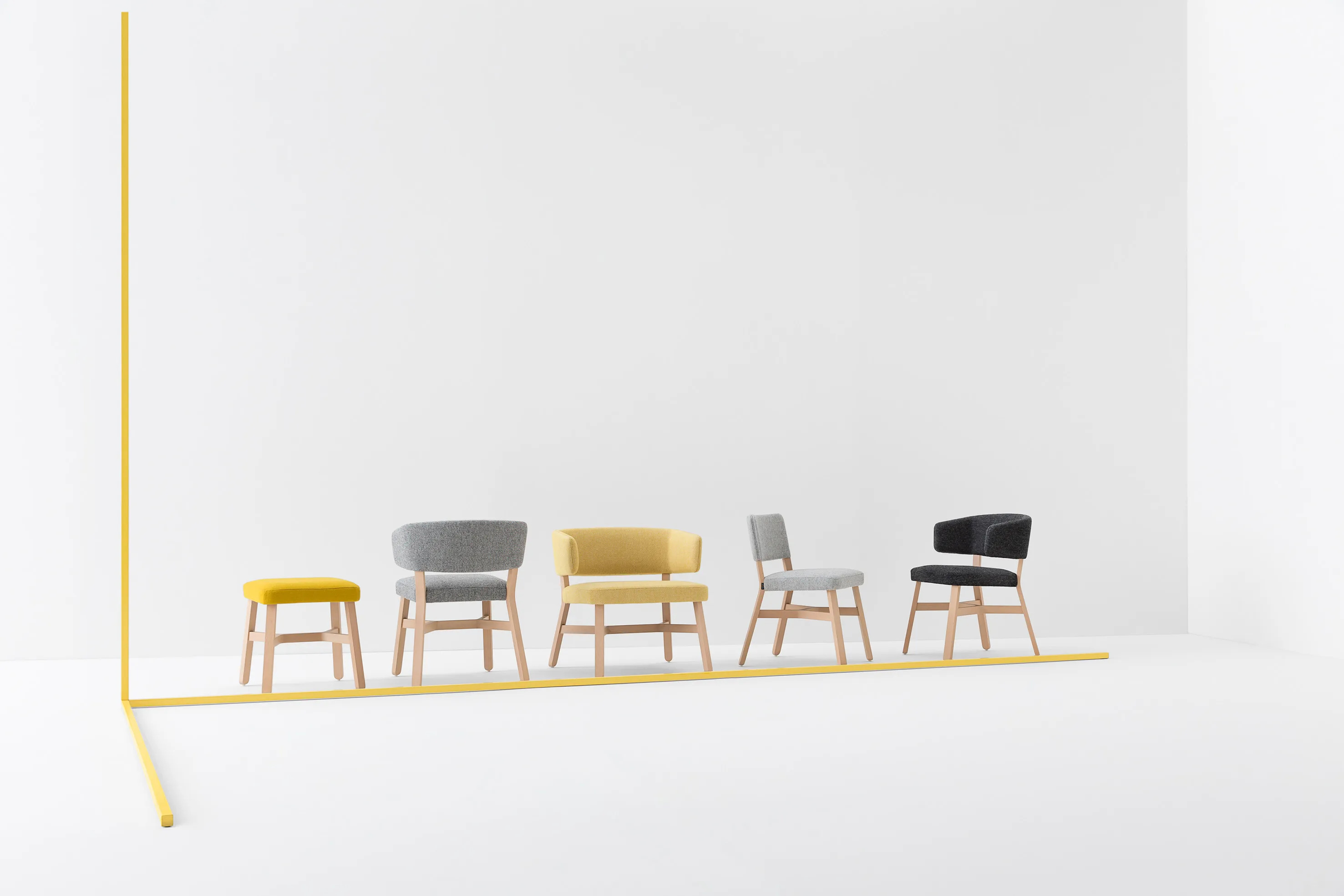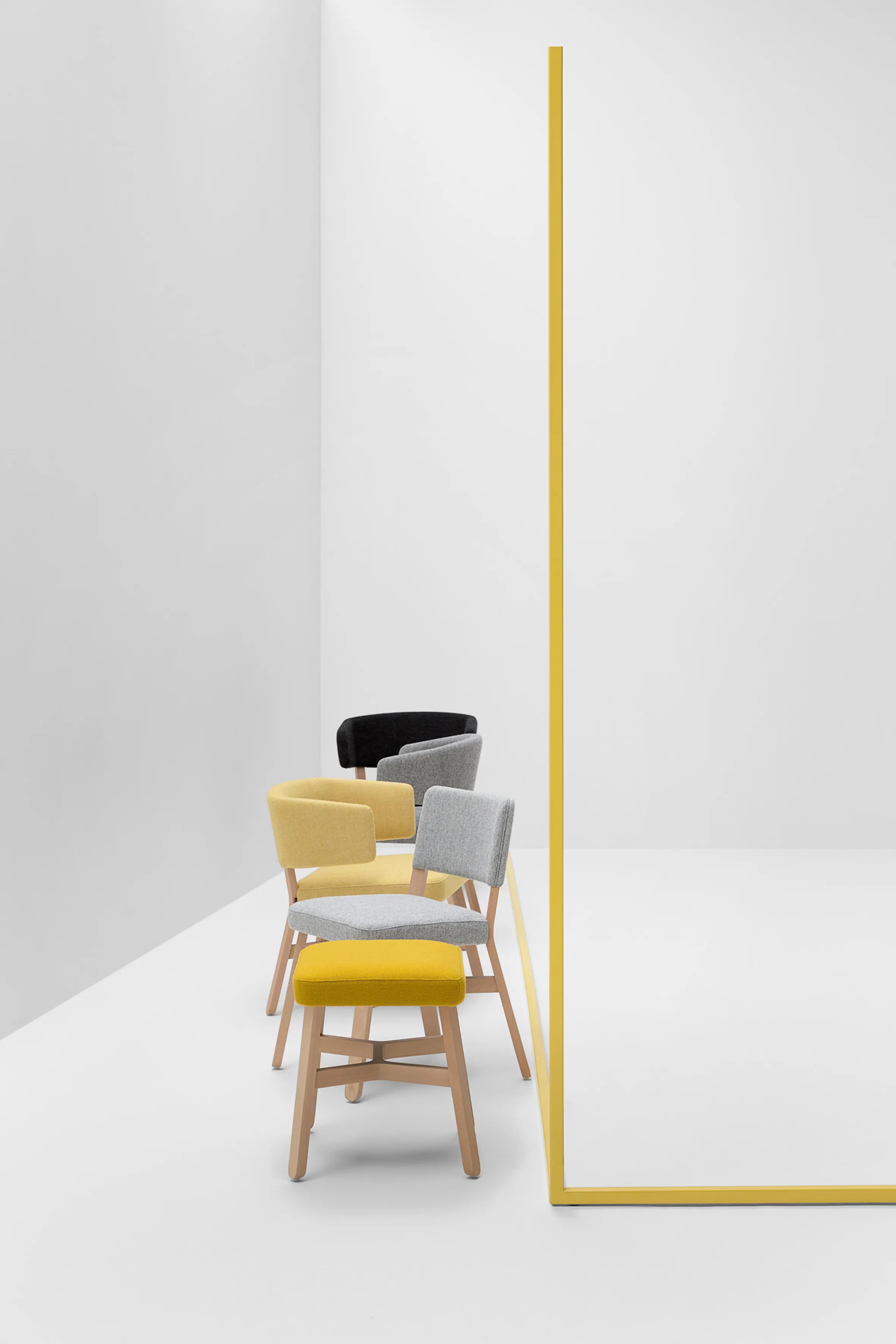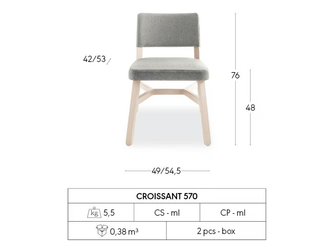 The CROISSANT 570 collection offers a cohesive design that seamlessly integrates into various settings, from dining areas to lounge spaces. This versatile range includes modern design tables and ergonomic chairs, ideal for restaurants, conference rooms, coworking spaces, cafés, event venues, and educational institutions. The chairs, crafted from stained or lacquered beechwood, feature upholstered seats and backs, available in fabric, faux, or real leather. These stackable chairs provide durable seating solutions, making them suitable for both intimate and large-scale gatherings. The collection's distinctive crosspiece design unifies the aesthetic across all pieces, ensuring a harmonious look in any environment.
