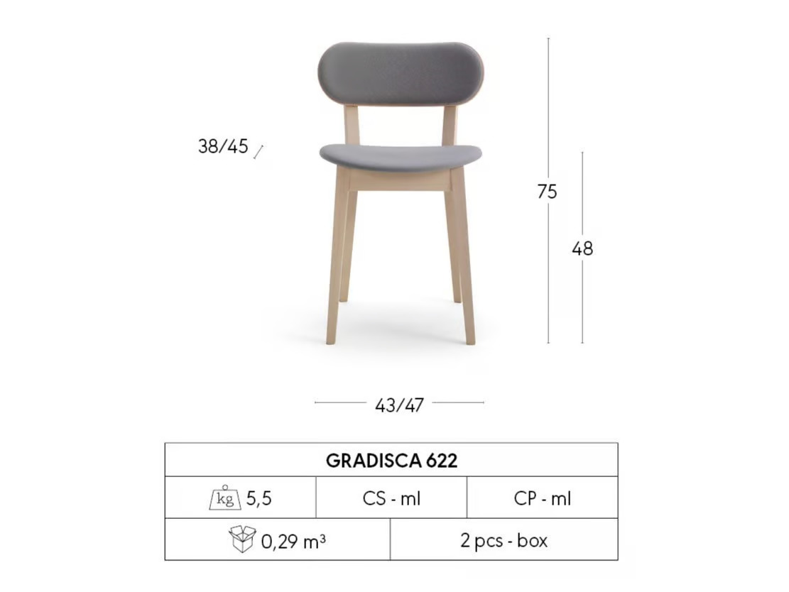 The GRADISCA 622 is crafted to meet the diverse needs of restaurants, conference rooms, coworking spaces, cafés, event venues, and educational institutions. This piece combines traditional craftsmanship with contemporary manufacturing techniques, offering a blend of style and functionality. Constructed from stained or lacquered beechwood, it features a padded seat and back, available in fabric, faux, or real leather. Its ergonomic design ensures comfort, making it ideal for dining tables and café settings. The chair's stackable nature provides practical storage solutions, while its durability makes it a reliable choice for conference room furniture. The modern design seamlessly fits into various environments, offering versatile and durable seating options.