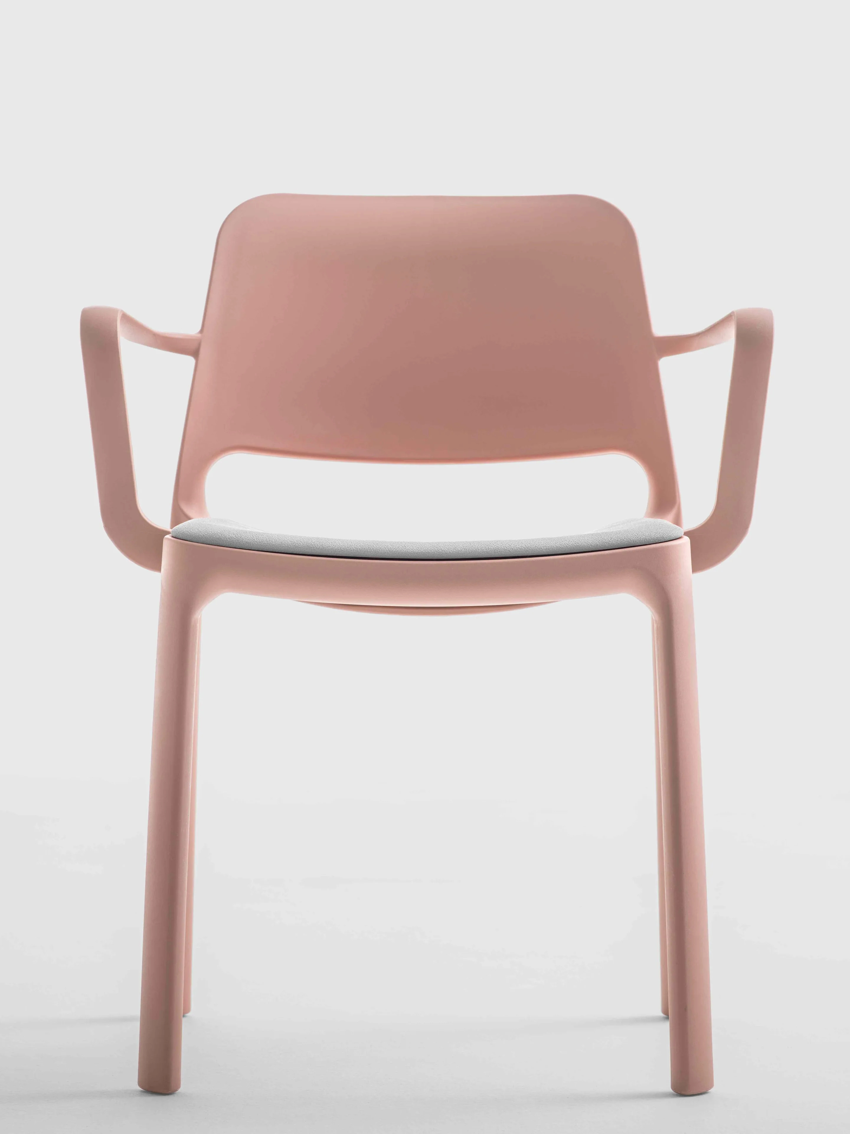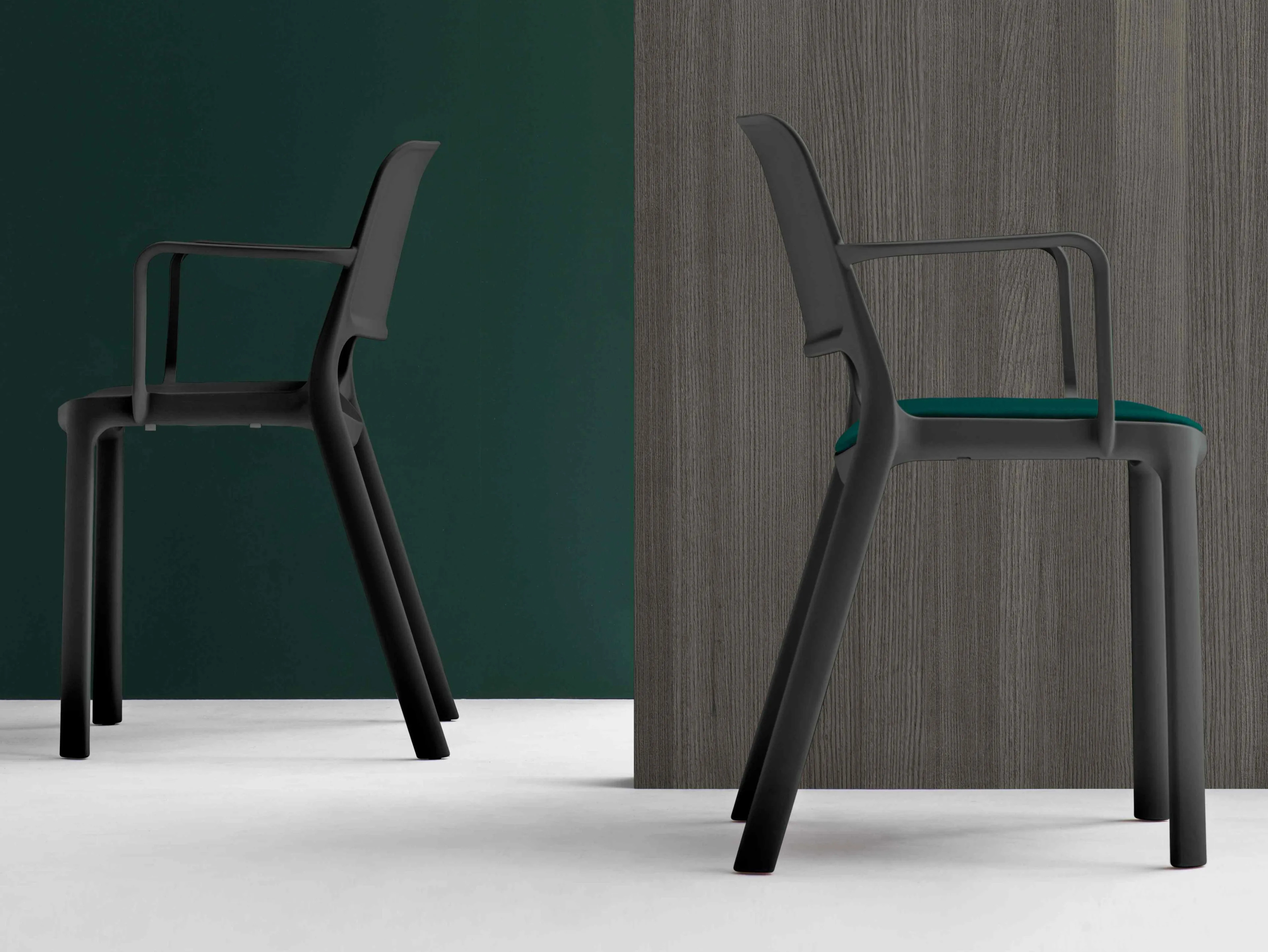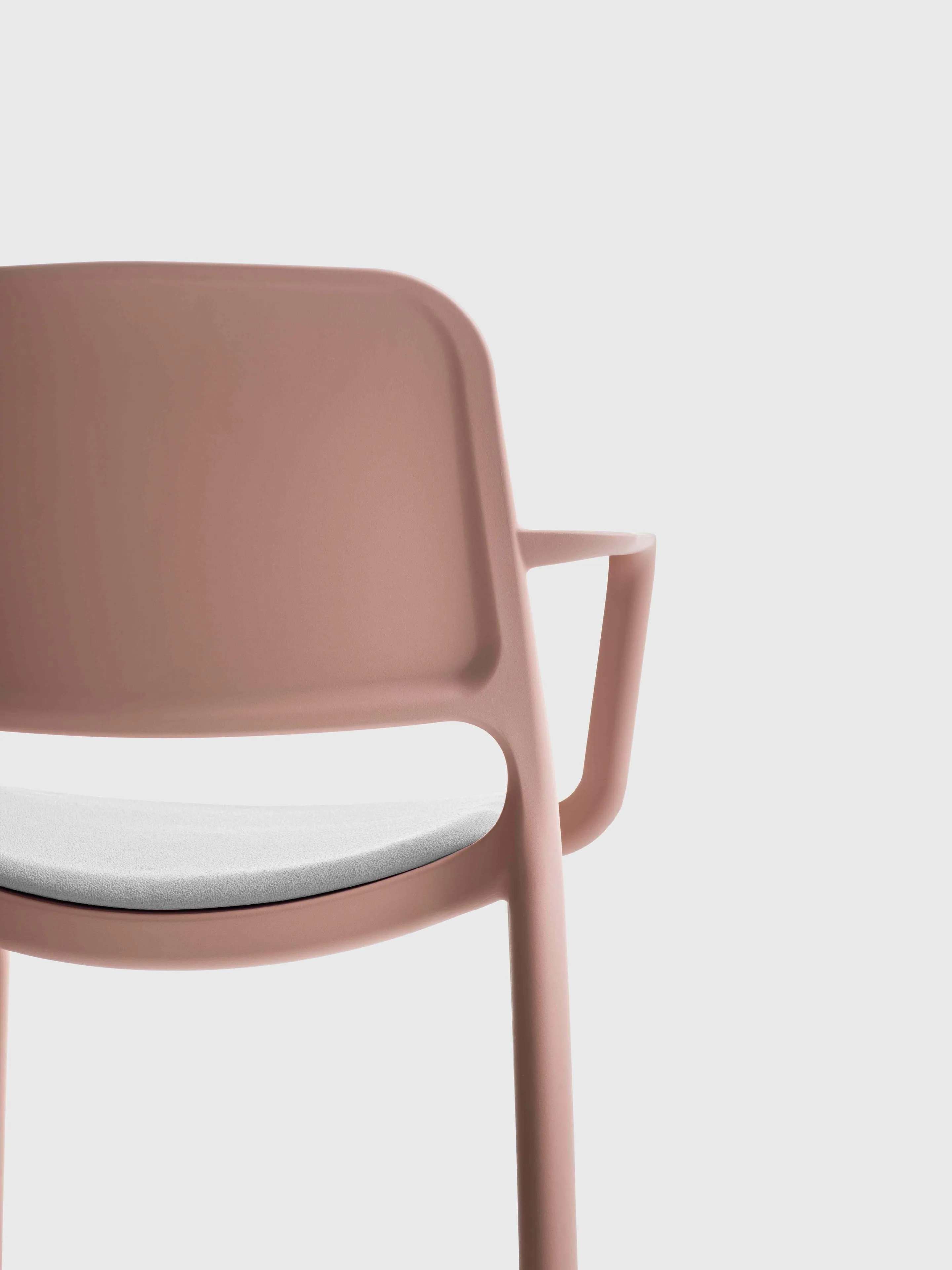 The LOTUS chair, featuring an integrated cushion, is designed for versatility and comfort in various settings such as restaurants, conference rooms, coworking spaces, cafés, event venues, and educational institutions. Crafted from durable technopolymer, its soft lines and modern design seamlessly blend with dining tables and café chairs. The chair's ergonomic shape provides comfort, while its stackable nature ensures easy storage, making it an ideal choice for conference room furniture and banquet halls. The chair's contemporary silhouette, available in a range of colors, complements modern design tables, offering a stylish yet practical seating solution.