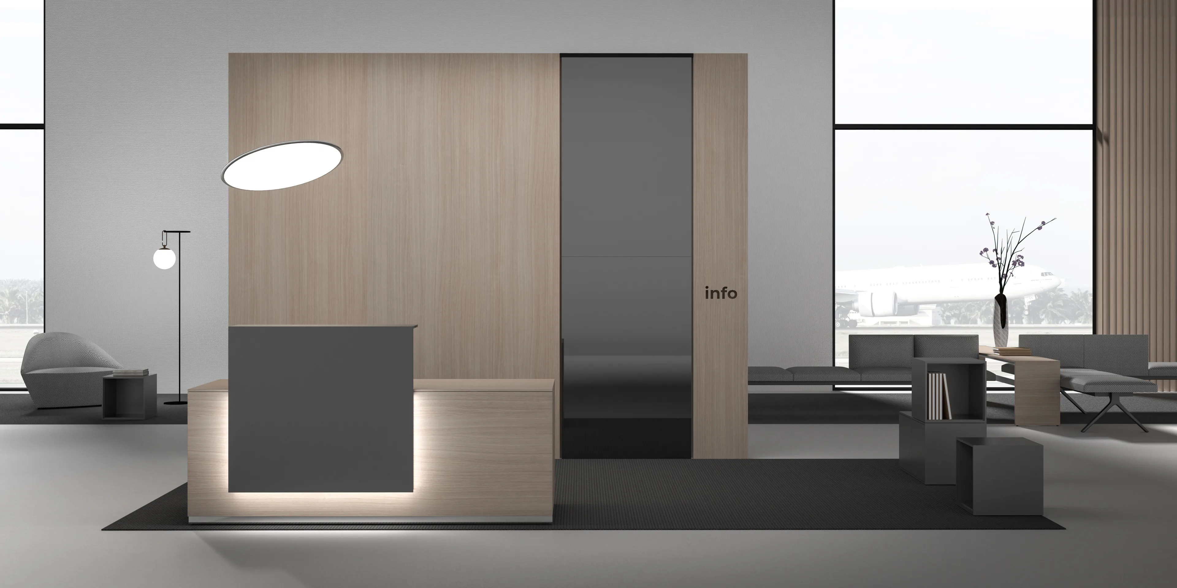 The LUX 3 is designed for professional environments, offering a versatile solution for meeting and waiting rooms. It features a lectern module and a uniquely shaped top, making it an ideal choice for modern meeting room tables. Beneath the front module riser, a multi-functional tray is equipped with on and off switches, an adjustable light intensity button, and electrifying equipment, ensuring seamless functionality. This piece complements comfortable meeting room chairs and modern waiting room seating, enhancing the overall aesthetic of reception area furniture. Its durable construction makes it suitable for high-traffic areas in offices, clinics, government buildings, corporate offices, and coworking spaces, providing a reliable and stylish option for durable meeting room desks.