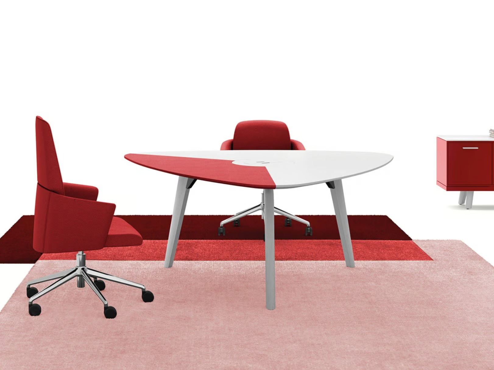 The RAIL Eco-leather meeting table, crafted in Italy, exemplifies the distinctive quality of Italian design. This versatile piece is ideal for offices, clinics, government buildings, corporate offices, and coworking spaces. Its innovative design allows it to function as both an executive desk and a conference table, optimizing space and enhancing functionality. The table is available in four configurations: a clear glass top with a choice of five materials paired with polished chrome-plated steel, or a wooden, mixed, or eco-leather top with three finishes, complemented by matt black lacquered steel. This modern meeting room table is designed to support dynamic and flexible office environments, making it a perfect addition to any reception area or waiting room. Its durable construction ensures it stands up to the demands of busy meeting spaces, while its modern aesthetic complements comfortable meeting room chairs and modern waiting room seating.