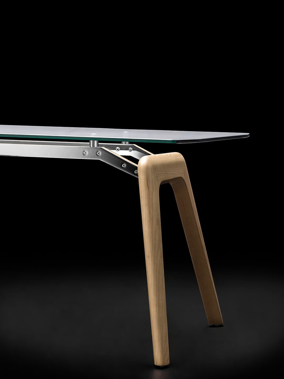 The RAIL office desk with shelves combines sleek design with functionality, making it an ideal choice for corporate offices, coworking spaces, and educational institutions. Its polished chrome-plated pedestals and visible wooden core provide a sturdy foundation, while the glass top adds a touch of modern elegance. This piece is part of Bralco's collection, crafted in Italy, ensuring the unique authenticity associated with Italian-made products. The desk's design supports a collaborative workspace environment, complementing ergonomic office chairs and adjustable height desks. As a piece of modular workstation furniture, it seamlessly integrates into various settings, enhancing the versatility of modern office desks.