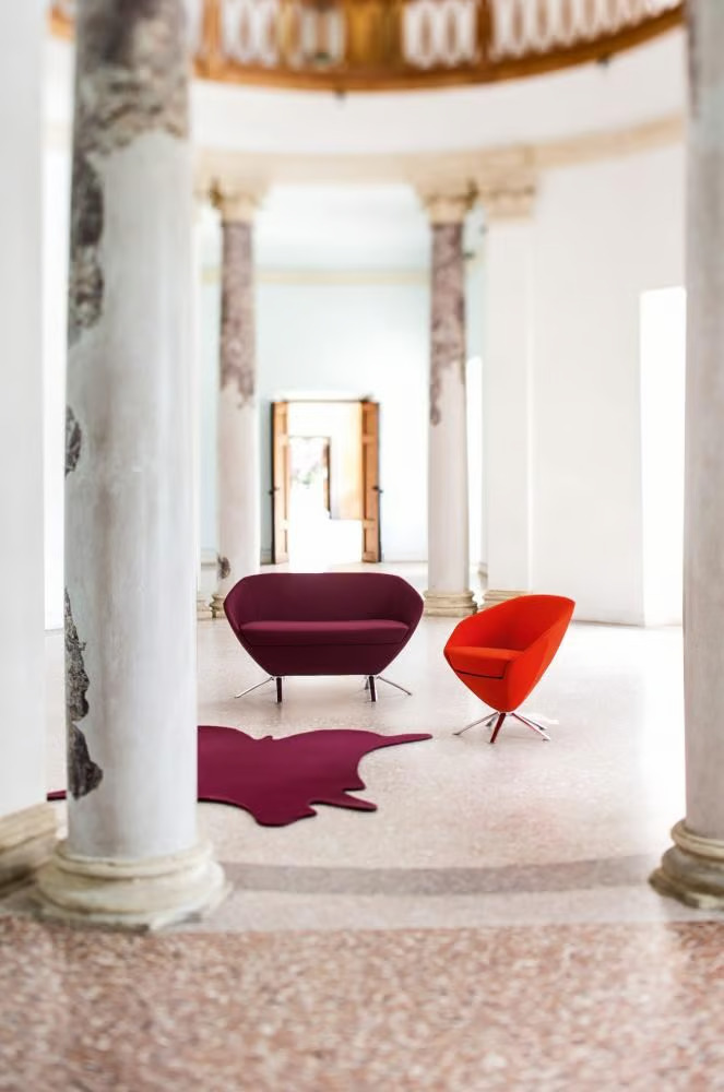 The FLEUR Sofa offers a harmonious blend of ergonomic design and modern lounge furniture, making it an ideal choice for hotels, cafés, lounges, and waiting rooms. Its nature-inspired shape provides comfortable seating solutions, enveloping the body with a soft foam-filled upholstered shell reminiscent of a flower's calyx. This luxury piece is available in various modular designs, allowing for customizable sofa configurations to suit any space, from compact areas to expansive interiors. The sofa can be paired with a range of metal bases, both fixed and swiveling, ensuring versatility in any setting. FLEUR's custom upholstery options and luxury armchair variants make it a sophisticated addition to residential interiors and professional environments alike.