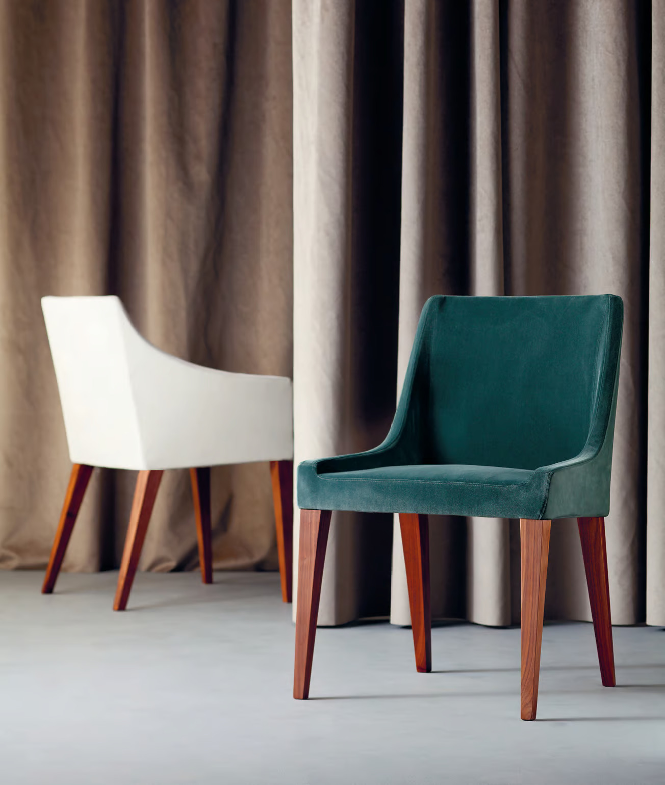 The NOSS Velvet Easy Chair seamlessly blends curves and straight lines, creating a harmonious design that offers both comfort and elegance. Its ergonomic design ensures pleasing relaxation, making it an ideal choice for hotel furniture, cafés, lounges, and waiting rooms. This luxury armchair is part of a modern lounge furniture collection, featuring customizable sofa designs and modular sofas for offices. The chair's versatility is highlighted by the option to choose between various metal bases or expertly crafted wooden legs, allowing it to complement any interior style. With its compact design, it serves as a comfortable seating solution, perfect for both residential interior designers and commercial spaces seeking upholstered armchairs and luxury sofas.