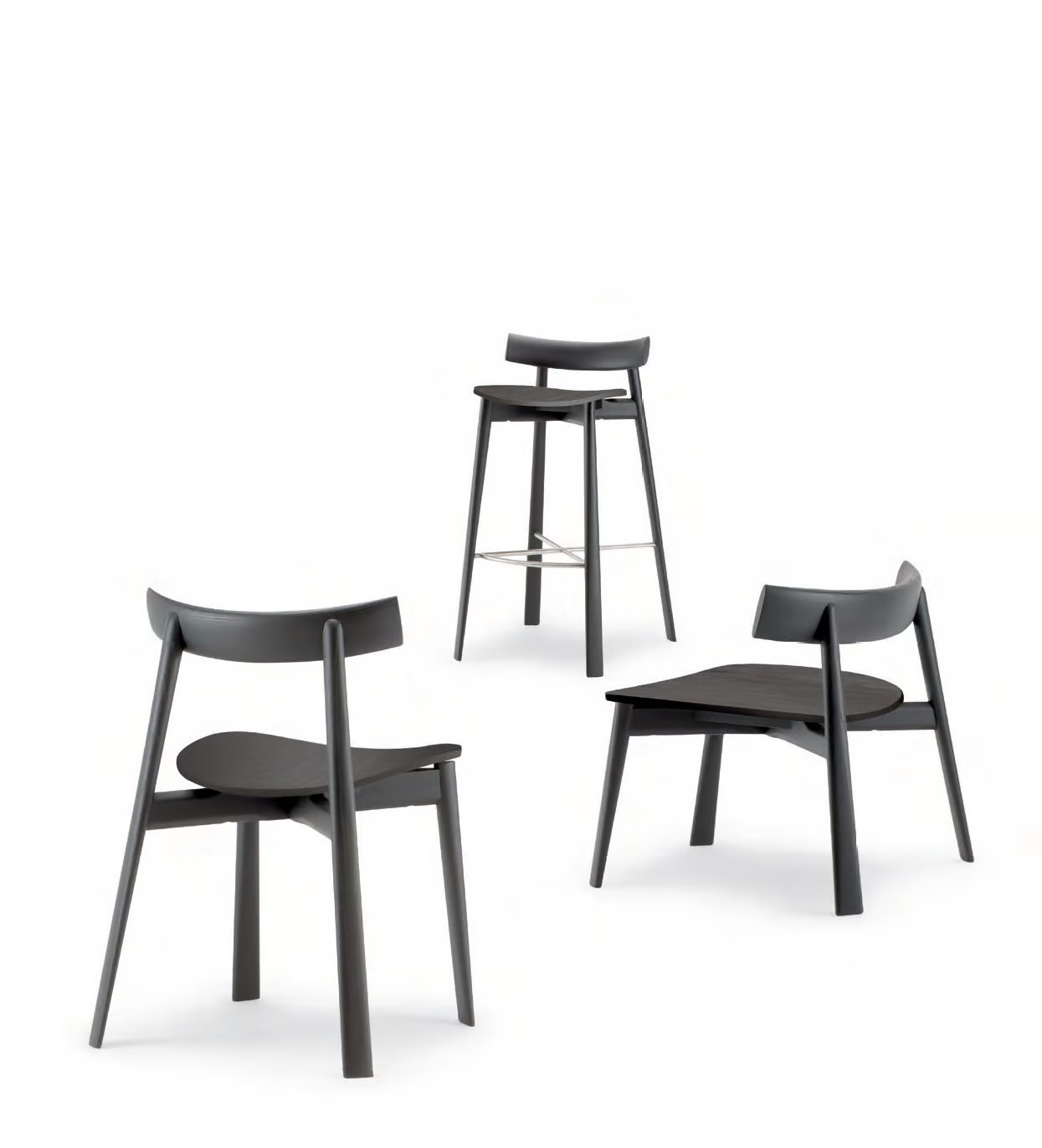 REMO offers a harmonious blend of lightweight aesthetics and robust construction, ideal for diverse environments such as restaurants, conference rooms, and educational institutions. This collection includes stackable chairs, lounge seating, and barstools, all characterized by a unique leg design that transitions from elliptical to flat, reminiscent of Venetian boat oars. Crafted from ash wood, the chairs are available with a wooden seat, a handcrafted cord seat, or an upholstered option, ensuring both comfort and style. These modern design tables and ergonomic chairs provide durable seating solutions, making them suitable for dining tables in cafés or as conference room furniture.