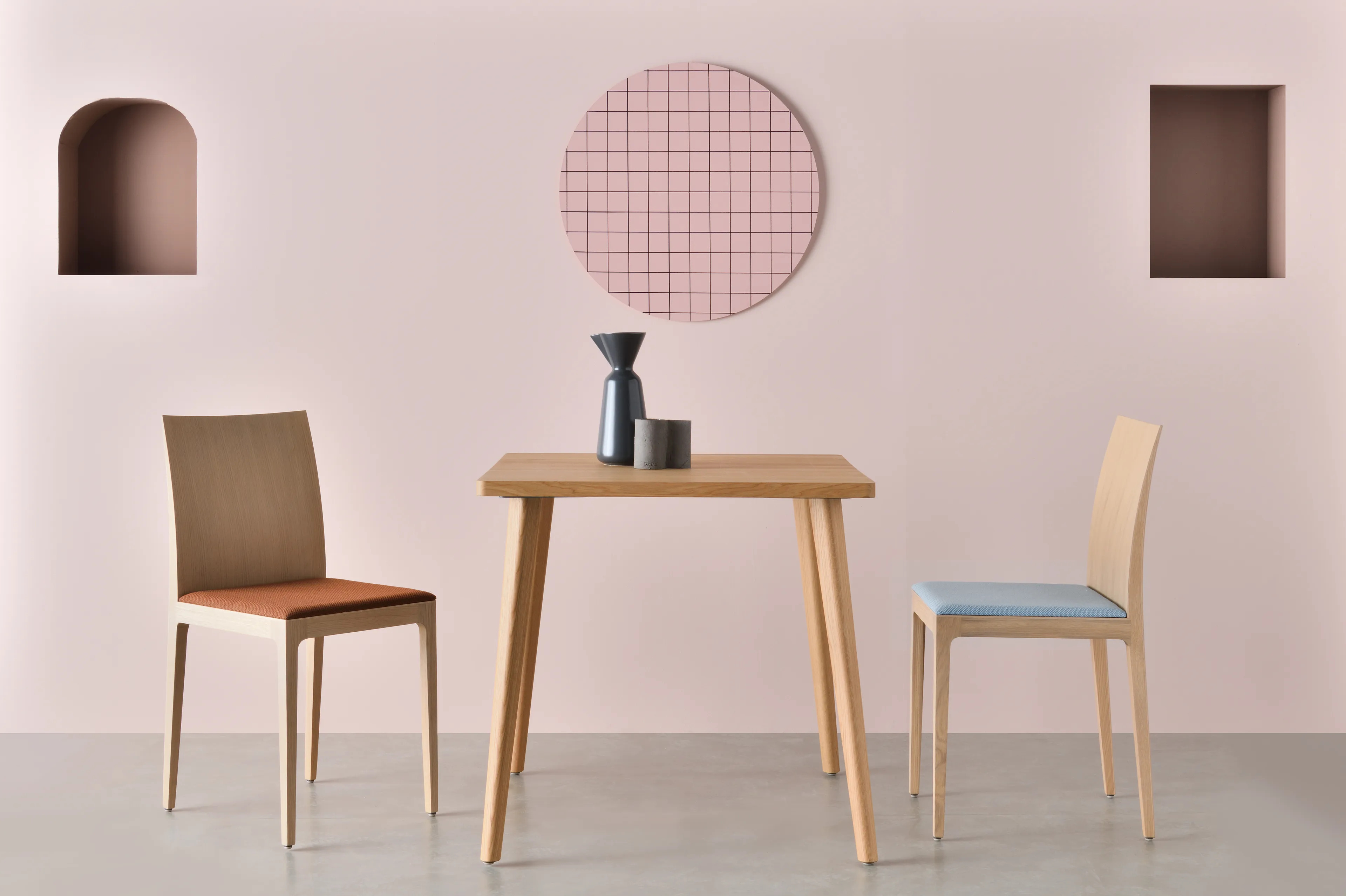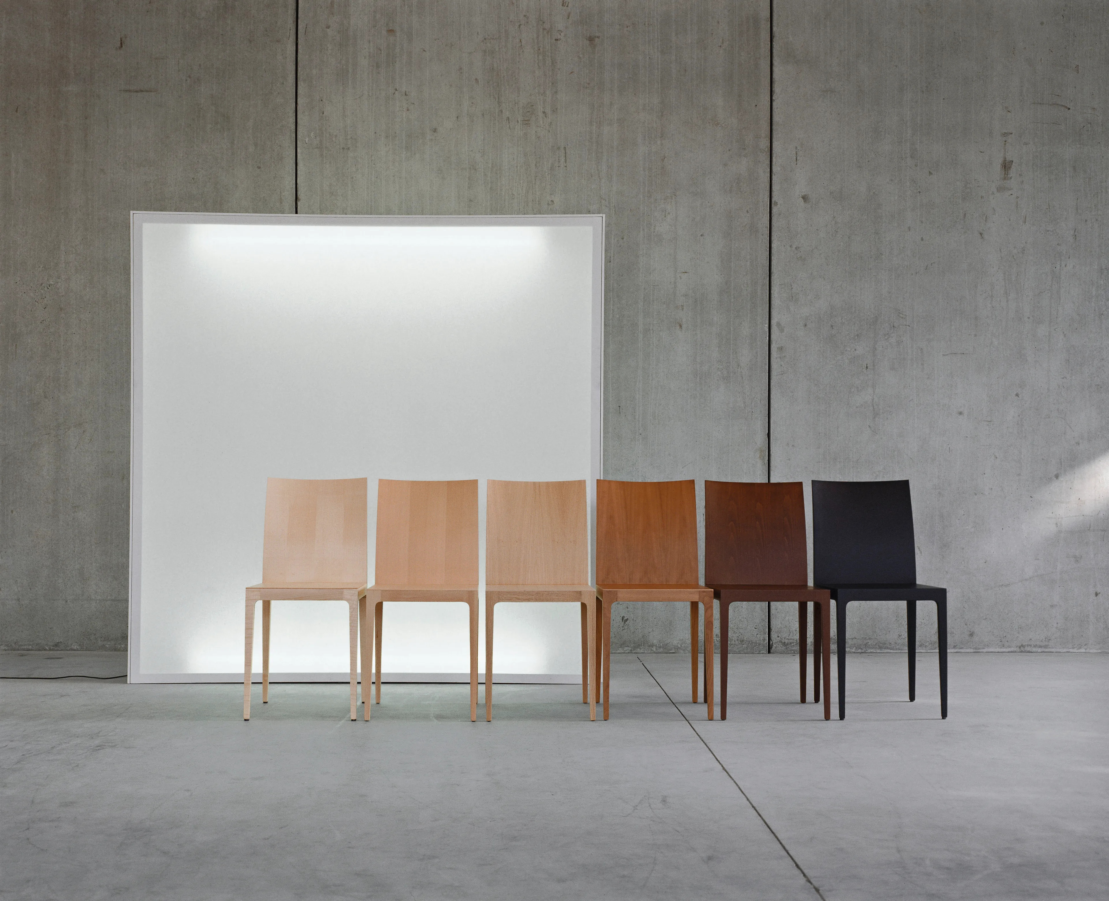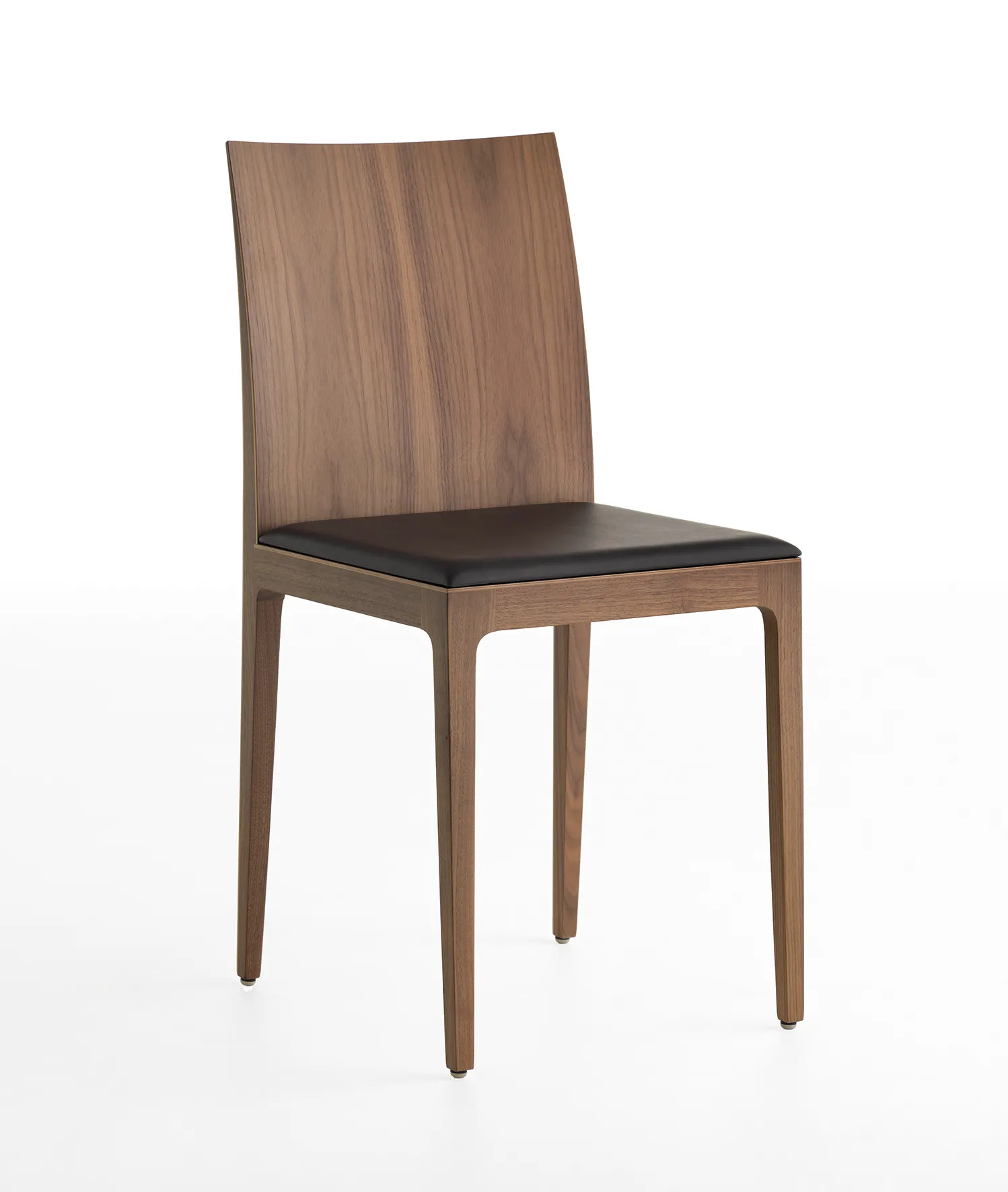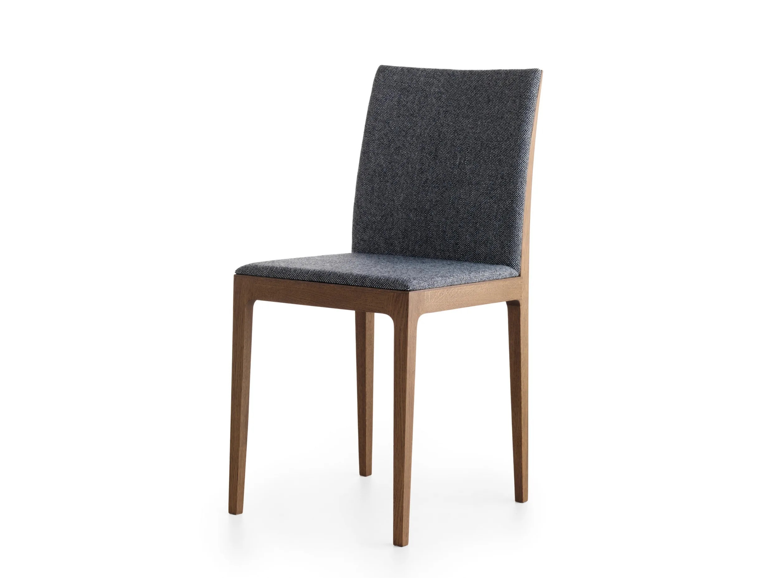 The ANNA R Upholstered Chair combines essential shapes with softened curves and delicate detailing where the seat meets the double-paneled backrest. Available as a side chair, stackable chair, or armchair, it also offers a selection of benches and stools. Each variant maintains a sense of lightness without compromising durability or stability. Crafted from beech, maple, oak, or American walnut, its timeless design complements dining tables and modern design tables alike. The solid wood frames and double-paneled plywood backs ensure robust construction, while the option for an upholstered panel on the seat or backrest enhances comfort. Ideal for restaurants, conference rooms, coworking spaces, cafés, event venues, and educational institutions, this chair is a versatile addition to any setting.