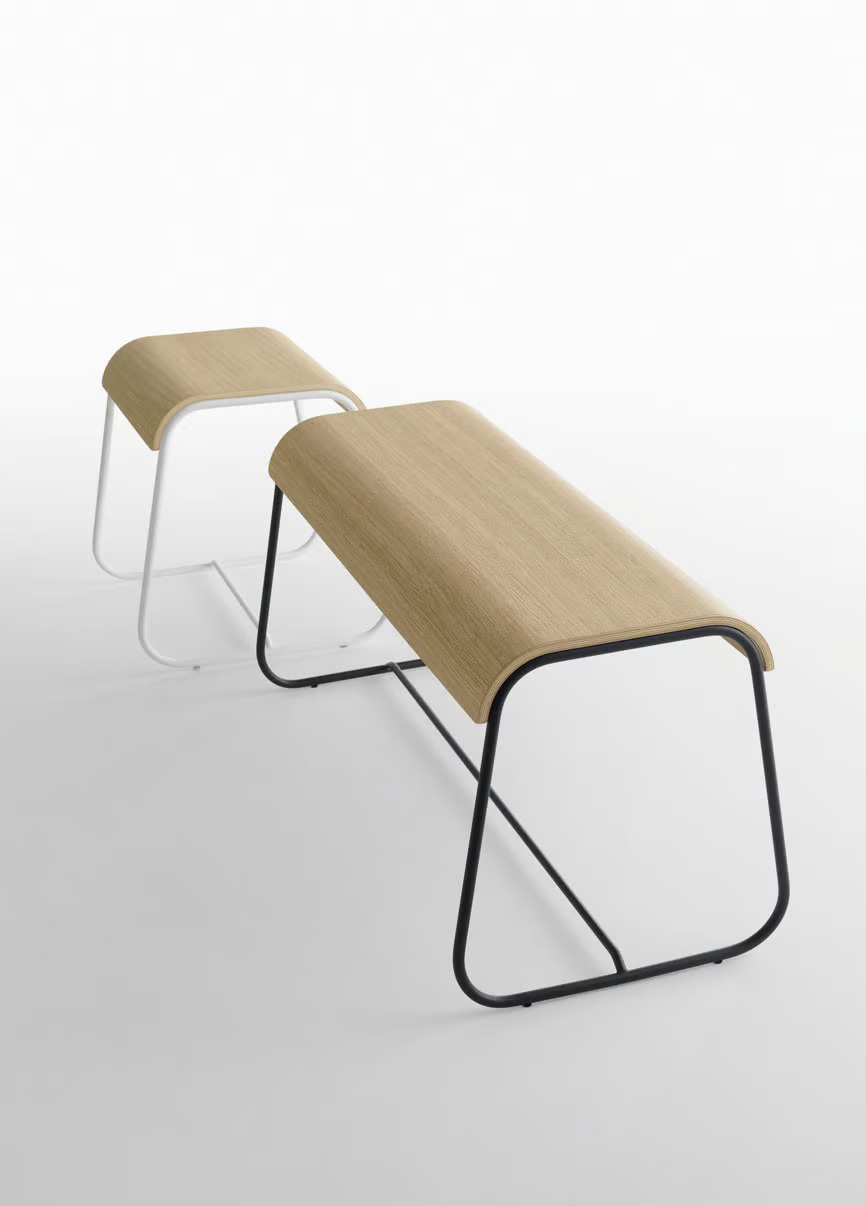 The LINEO B Bench offers a versatile seating solution, ideal for restaurants, conference rooms, coworking spaces, cafés, event venues, and educational institutions. Its modern design features a high-resilient steel frame, available in chromed or powder-coated finishes, ensuring durability and stability. The seat is crafted from oak veneered plywood, available in natural, stained, or lacquered finishes, or can be padded and upholstered in a range of materials for added comfort. This bench complements dining tables and café chairs, providing ergonomic and durable seating options. Its lightweight construction does not compromise on safety, making it a practical choice for spaces requiring flexible and stackable seating arrangements.