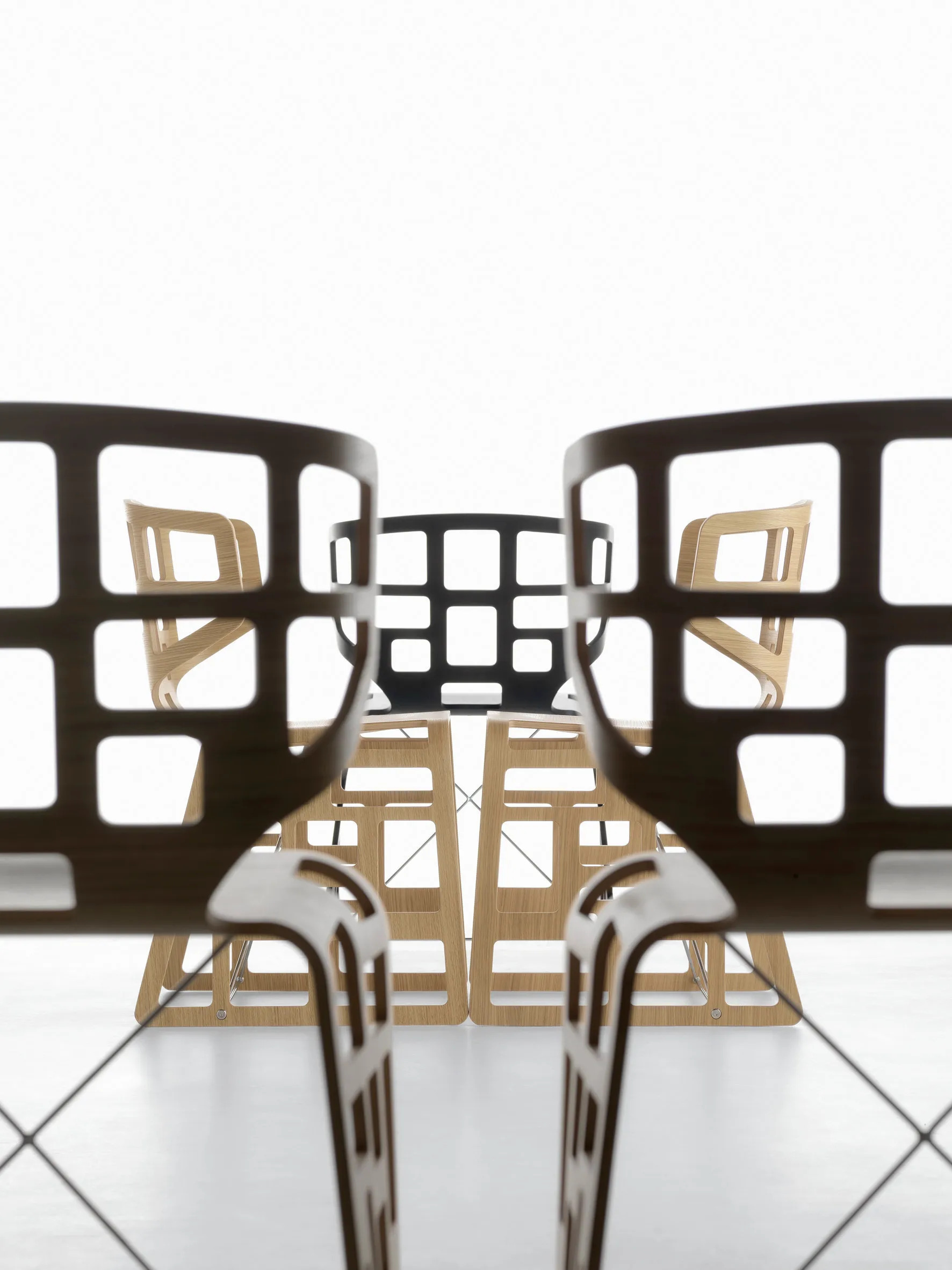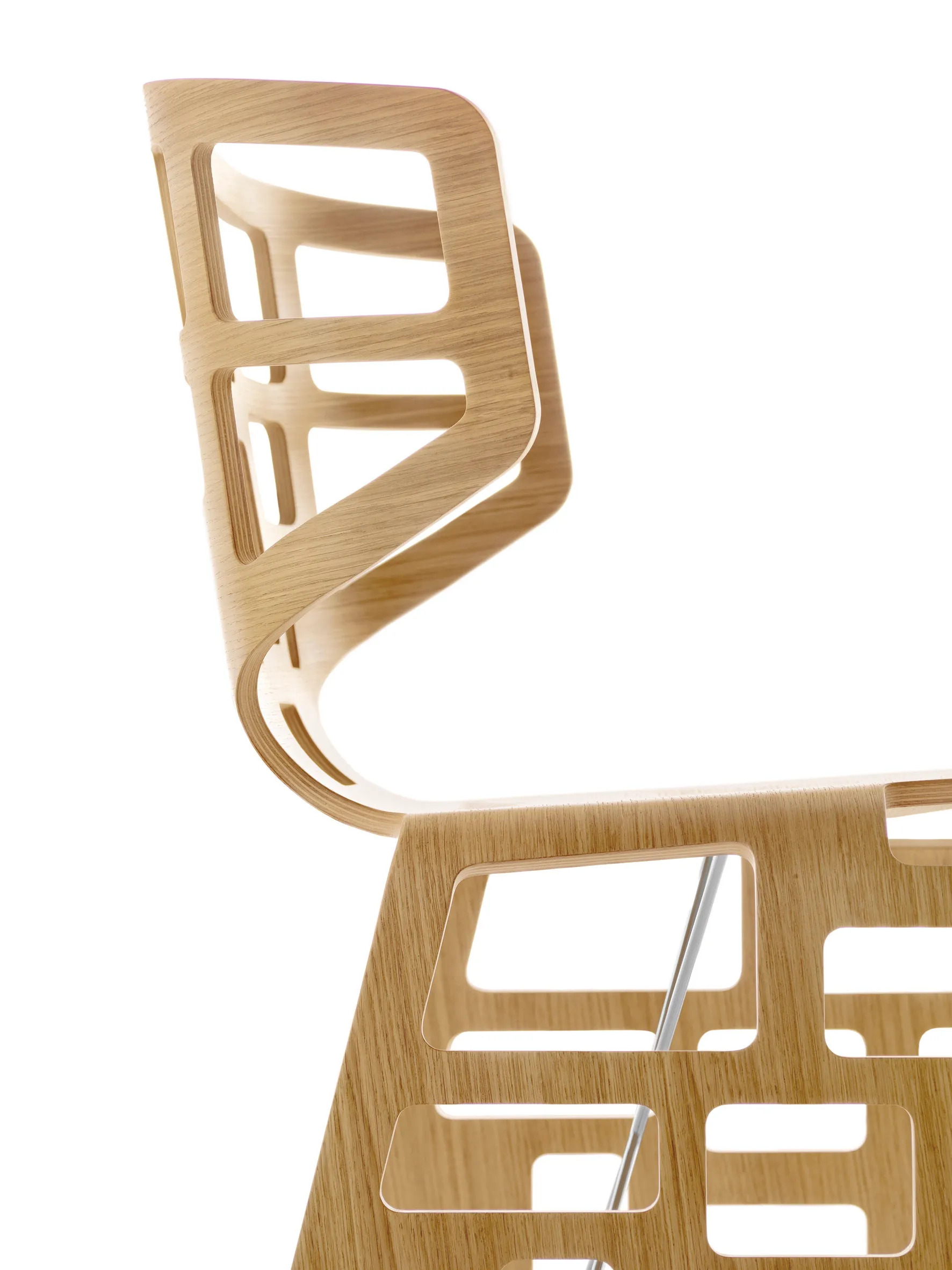 The OLÈ R side chair features a seat crafted from a single sheet of oak plywood, expertly calibrated and molded to a thickness of 12 millimeters. Designed by Ludovica and Roberto Palomba in 2005, this chair showcases a distinctive pattern of holes in varying shapes and sizes, creating an intriguing interplay of space and volume. Its modern design makes it an ideal choice for dining tables in restaurants, conference room furniture, and café chairs. The chair's ergonomic and durable seating ensures comfort, while its stackable nature offers practicality for event spaces, banquet halls, and educational institutions. Recognized for its innovative design, the OLÈ R was awarded the "Best of 2007" Interior Design Award in the Seating category.