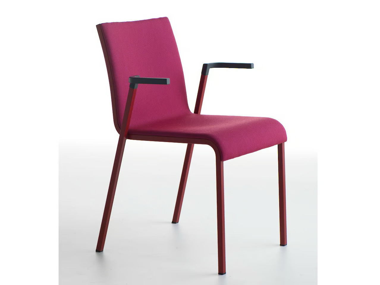 The PERSIA P Upholstered Chair features a lightweight frame crafted from a curved square steel tube, offering both durability and style. This stackable chair is available in various colors, enhancing the aesthetic of dining tables, café settings, and modern design tables. Its ergonomic design ensures comfort, making it suitable for conference room furniture and educational institutions. The chair is available with either an upholstered seat or a structural, flame-resistant polyurethane shell, complemented by polyurethane armrests. With dimensions of D 56 W 56 H 81 SH 46, it provides a versatile seating solution for restaurants, coworking spaces, event venues, and banquet halls.