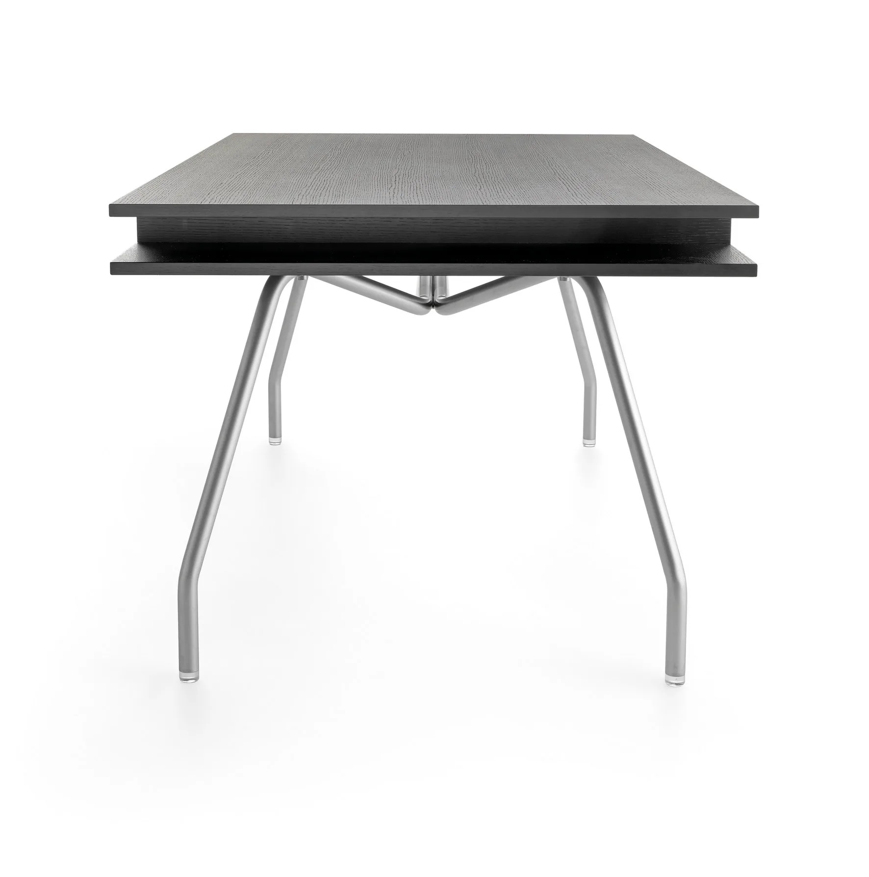 The WORKTOP features a satin chrome-plated steel frame, offering a modern design suitable for various settings such as restaurants, conference rooms, coworking spaces, cafés, event venues, and educational institutions. Its dual-panel surfaces are crafted from veneered beech or oak, edged with solid wood, providing a durable and stylish work area. The integrated drawers, made from the same high-quality materials, offer practical storage solutions, complemented by a small compartment in satin aluminum. Available in two sizes, this versatile piece of conference room furniture is designed to accommodate diverse needs. Its robust construction ensures longevity, making it an ideal choice for dining tables and café chairs arrangements, while the ergonomic and stackable chairs enhance seating flexibility.