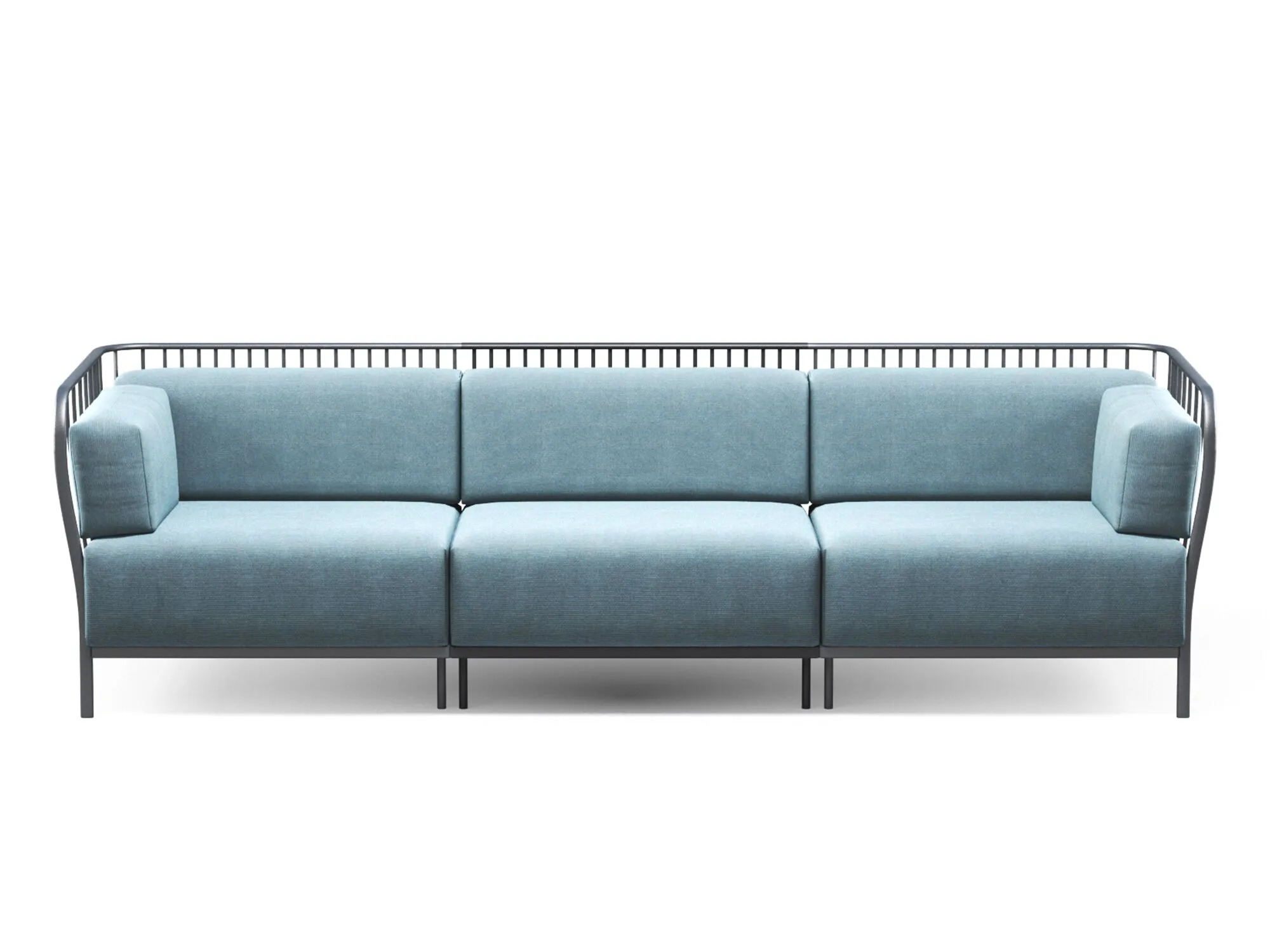 The CANNOLÈ collection, designed by Anton Cristell and Emanuel Gargano, offers a versatile seating system ideal for resorts, cafés, restaurants, outdoor event planners, and beachside hotels. This durable outdoor furniture features a fully welded structure crafted from internally and externally galvanized steel tubes, ensuring longevity and resilience. The seating includes a galvanized rod grid welded onto a rod frame, supported by tubular steel legs. The collection comprises modular outdoor seating options such as corner and linear module sofas, poufs, low armchairs, and low tables. Each piece is finished with thermosetting polyester powders for enhanced durability. The cushions, made from polyurethane rubber with an added polyester fiber resin layer, are encased in a waterproof polyamide pillowcase. Available in a range of colors, the structure comes in antique iron, matt white, black, maple red, Indian brown, and sand, while the cushions are offered in various fabric options.