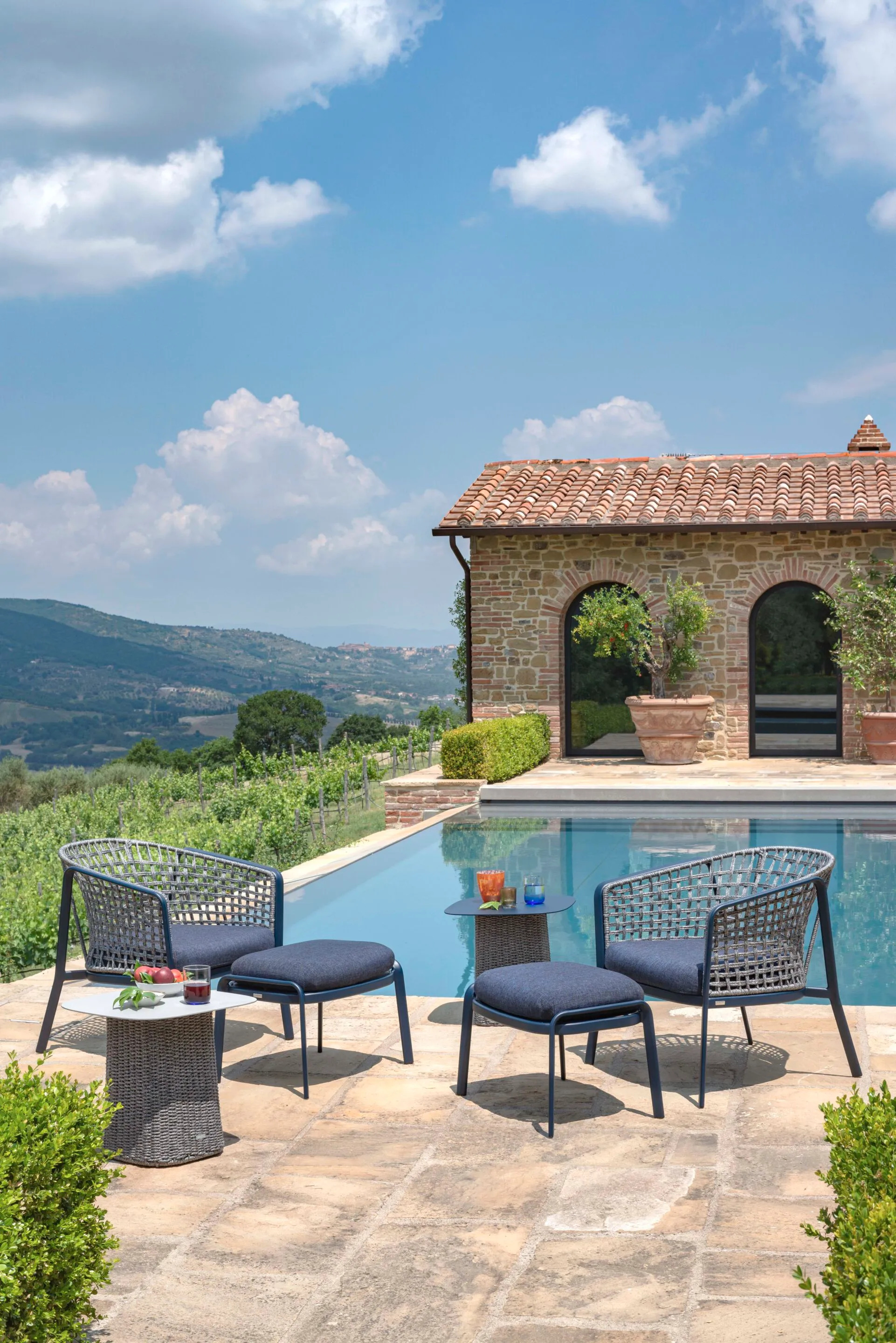 The Carousel collection offers a sophisticated blend of modern lounge furniture, ideal for hotels, cafés, lounges, waiting rooms, and residential interior design projects. Featuring comfortable sofas and luxury armchairs, this collection is crafted with an ergonomic design and modular options, making it a versatile choice for various settings. The aluminum frame, known for its durability and lightweight properties, is complemented by custom upholstery options, allowing for a range of color and material combinations. The technical fabric version, suitable for outdoor use, ensures water repellency and long-lasting color stability, making it perfect for marine environments and extreme weather conditions. The collection includes four dining armchair versions and three lounge armchair versions, each showcasing a unique blend of industrial design and handcrafted appeal. Made in Italy, the Carousel collection is a testament to high-quality craftsmanship and innovative design.