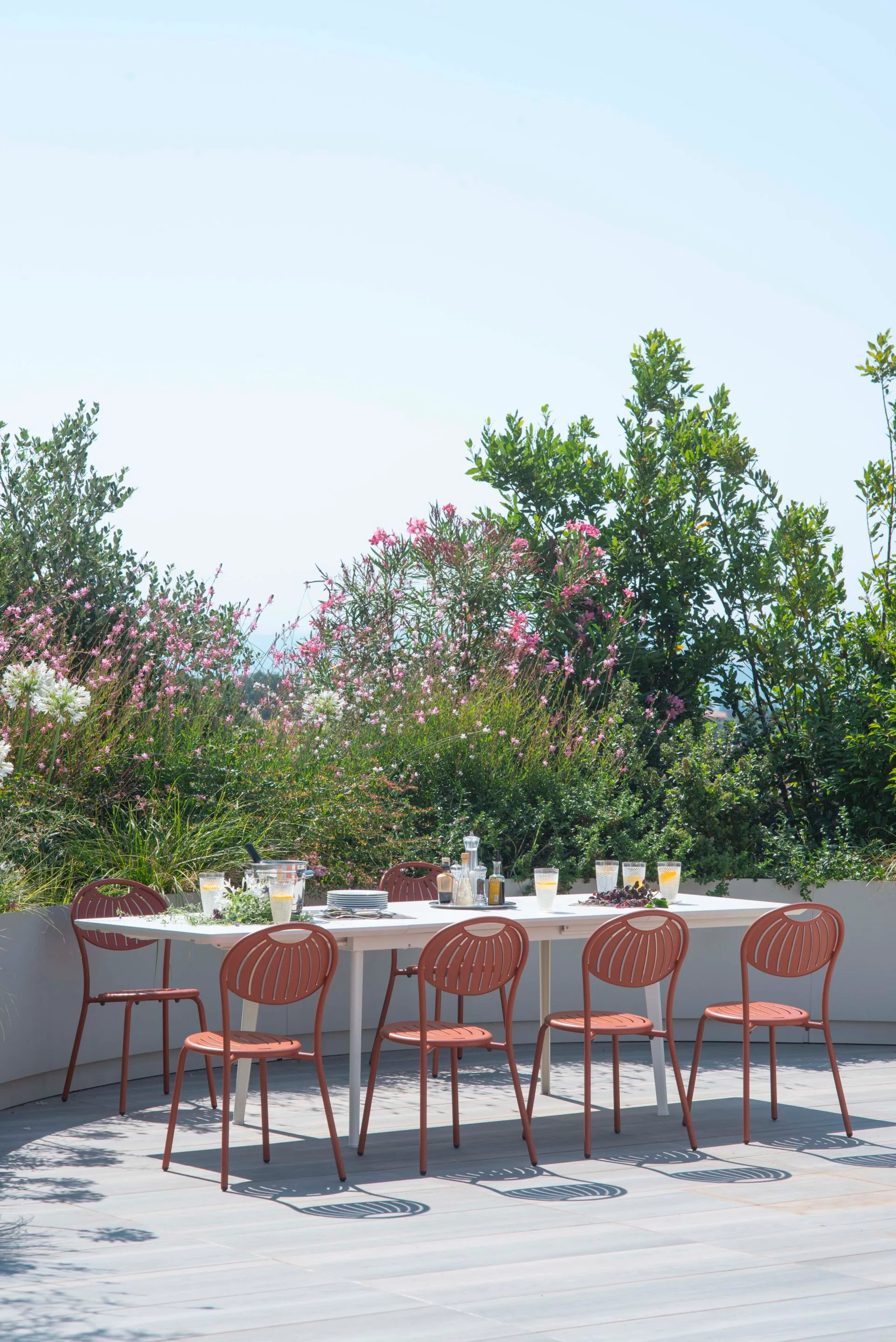 The IMPERIAL collection offers versatile and modern design tables ideal for restaurants, conference rooms, coworking spaces, cafés, event venues, and educational institutions. Crafted with a durable steel frame, the extendable rectangular table adapts to various settings, providing ample seating options. The built-in extension feature allows for additional seating, accommodating up to 12 people comfortably. Its ergonomic and stackable chairs complement the table, ensuring durable seating solutions for high-traffic areas. The collection includes tables in various shapes and sizes, such as round and oval, to suit different spatial needs. The compact design of the Balcony table is particularly suitable for outdoor areas with limited space, making it a practical choice for diverse environments.