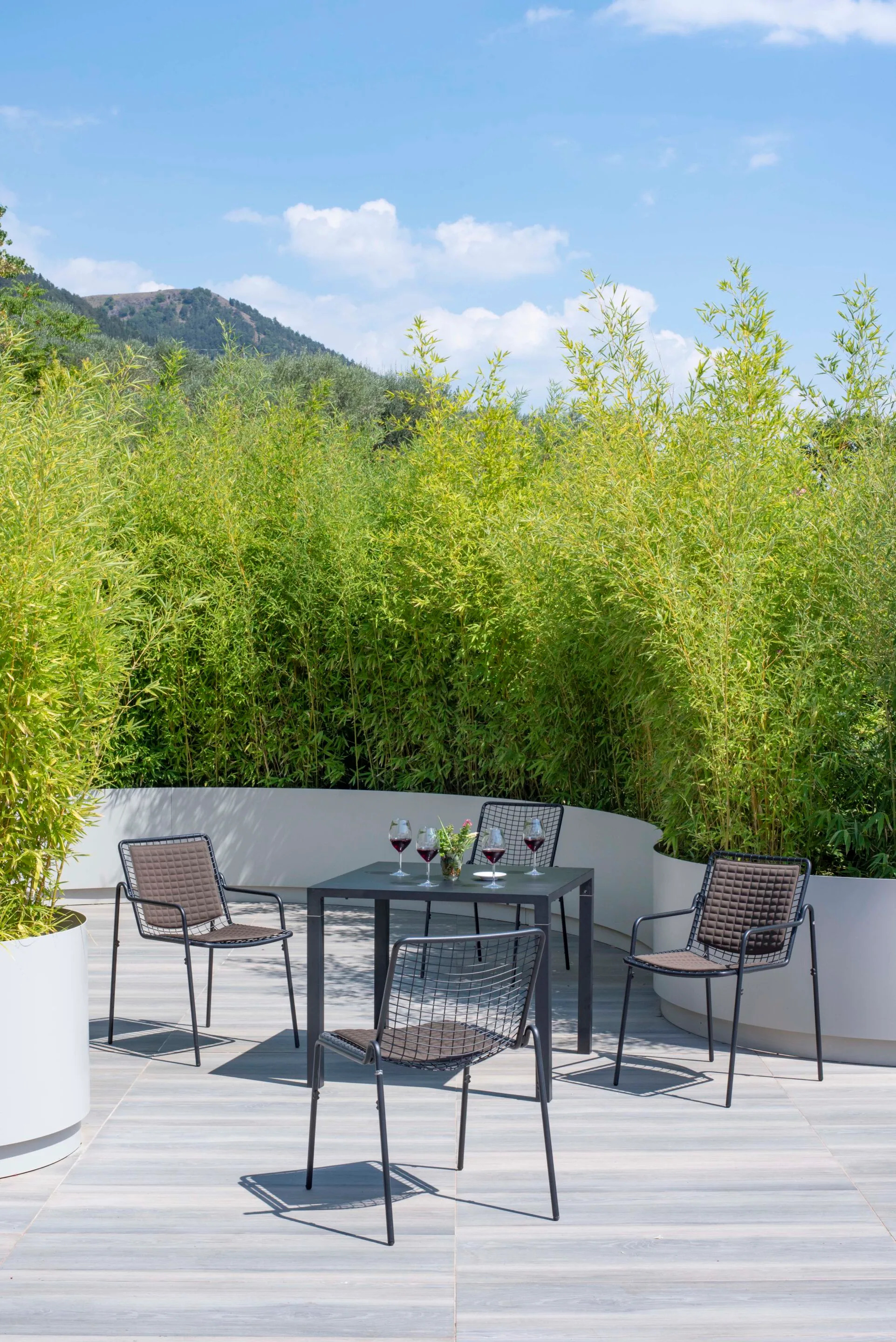 The RIO R50 series offers a sophisticated blend of modern design and durability, ideal for diverse settings such as restaurants, conference rooms, coworking spaces, cafés, event venues, and educational institutions. Crafted in Italy, the RIO R50 features a robust ASFORM steel tube frame, known for its high mechanical performance and weight resistance. The ergonomic design is highlighted by a distinctive 'R' shape at the junction of the seat and backrest, providing both comfort and aesthetic appeal. The steel wire net is electro-welded for precision, while the Mig technology welds ensure resistance to stress and rust. A cataphoresis pretreatment followed by a thermosetting powder coating enhances the finish's adherence and durability. Nylon feet protect surfaces and facilitate easy movement. The collection includes dining tables, café chairs, and stackable seating options, making it a versatile choice for both indoor and outdoor environments.