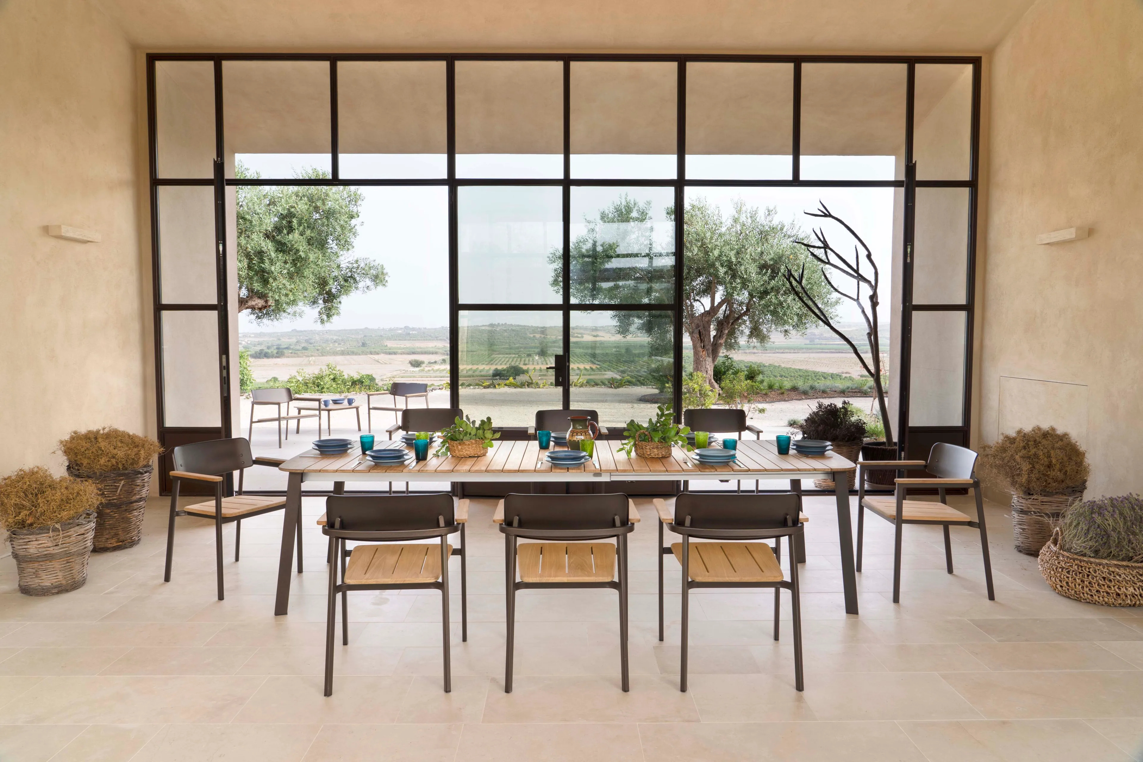The SHINE collection, crafted by Arik Levy, offers a versatile range of furniture suitable for restaurants, conference rooms, coworking spaces, cafés, event venues, and educational institutions. This collection features modern design tables and durable seating options, including stackable café chairs and ergonomic chairs, all constructed with a blend of aluminum and FSC 100% teak. The dining tables and high tables are designed to enhance any setting, while the stackable chairs and sun loungers with teak armrests provide practical and stylish solutions. The collection also includes stools, a sun lounger, daybed, and a 2-seater sofa, available in a variety of colors such as matt white, black, dark brown, and dove grey, with teak tops and fabric options in white, black, brown, and dove grey.