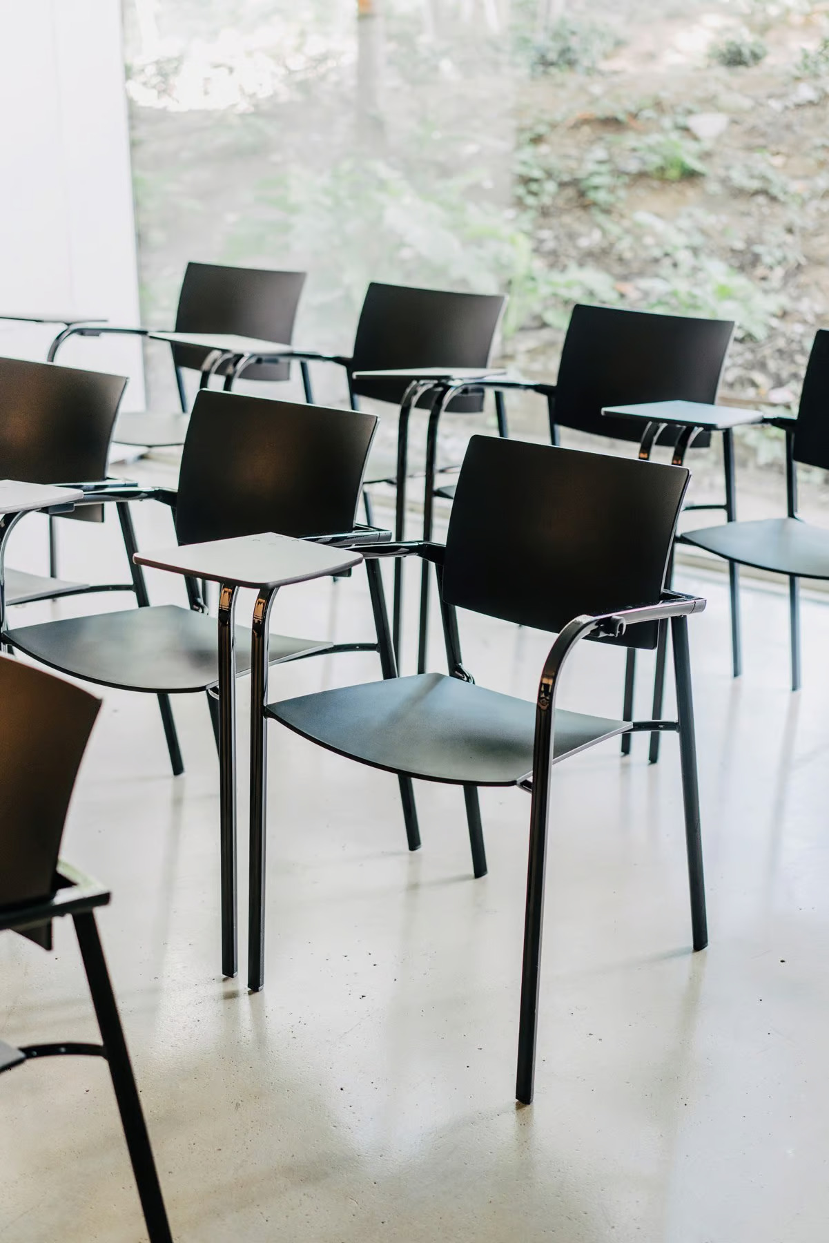The BIO Chair with armrests is designed for versatile use in restaurants, conference rooms, coworking spaces, cafés, event venues, and educational institutions. Featuring a stackable design, this chair is crafted with a durable 4-legged steel frame and aluminum armrests, available in chrome/polish or lacquered finishes in various Enea Design colors. The seat and backrest are made from polypropylene, with options for upholstery in a wide selection of fabrics. Its robust construction makes it suitable for high-traffic areas, providing reliable seating in environments such as dining tables and conference room furniture. The BIO collection includes two models: a lightweight version with a short backrest and an ergonomic option with a larger backrest, catering to diverse seating needs.
