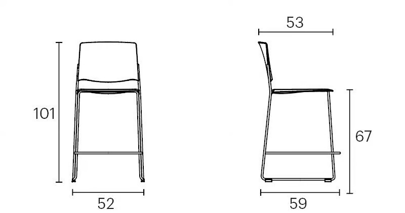 The EMA stool, featuring an open backrest, is designed for versatility and durability, making it ideal for restaurants, conference rooms, coworking spaces, cafés, event venues, and educational institutions. Its lightweight, stackable design is supported by a sledge steel frame, available in chrome or a variety of Enea Design colors. The seat and backrest options include polypropylene or upholstery, with an additional upholstered seat pad to enhance comfort and reduce friction during stacking. Offered in both high and medium heights, the stool is also available with a closed backrest. The EMA collection's robust construction and adaptability, complemented by a range of accessories, make it a suitable choice for dining tables, café chairs, and conference room furniture, providing ergonomic and modern design solutions for diverse environments.