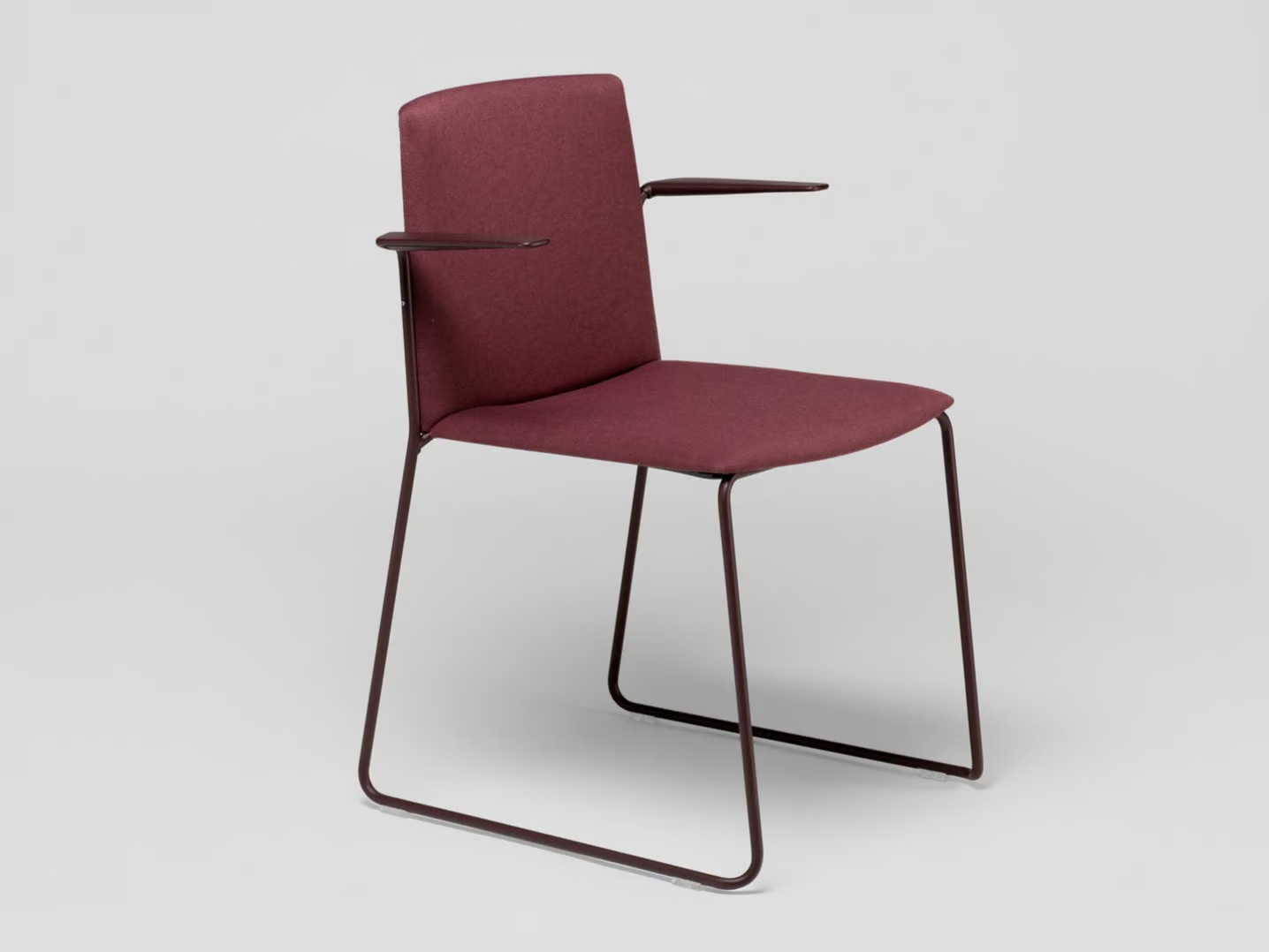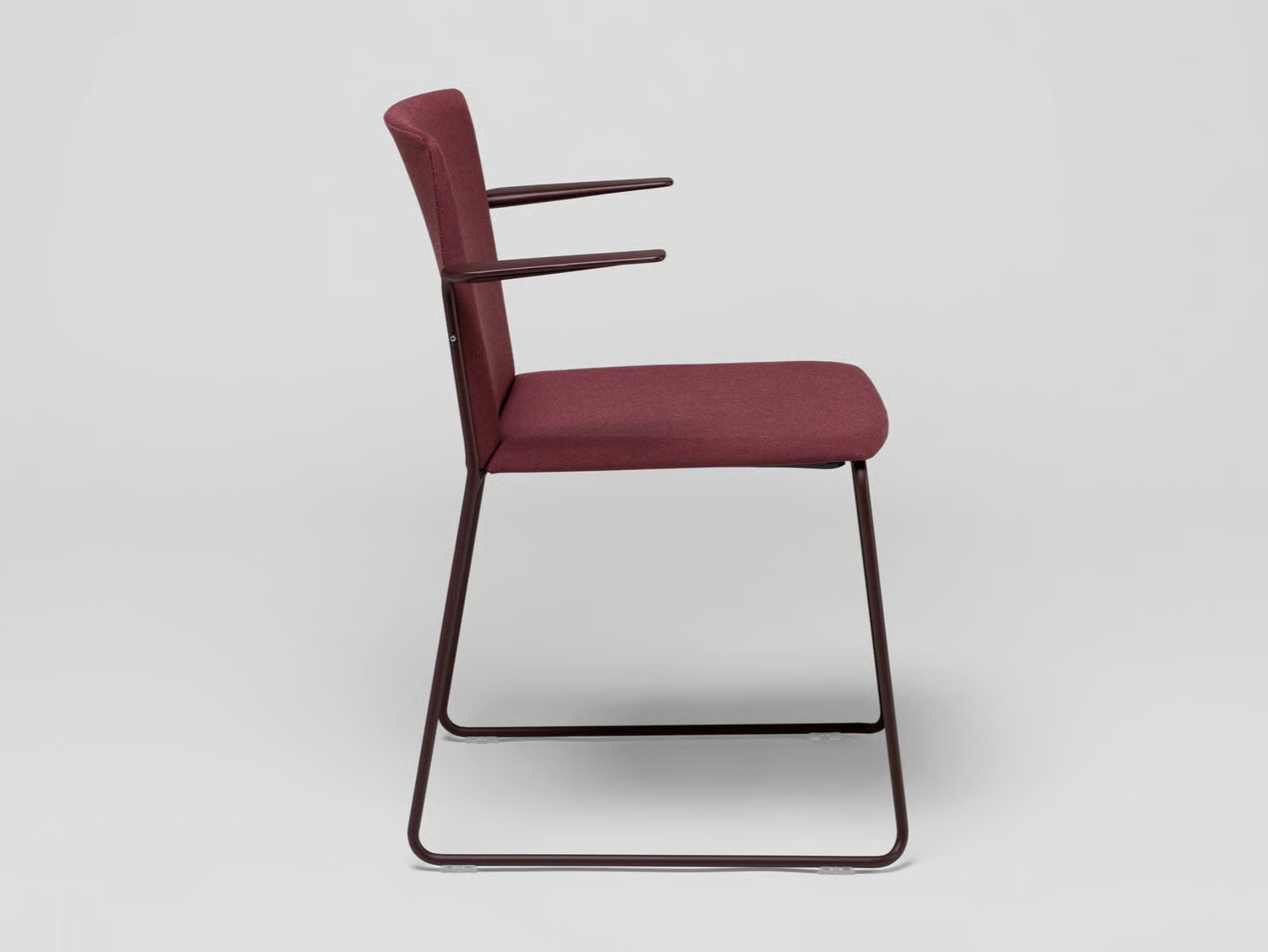 The EMA Chair with armrests is designed for versatility and durability, making it ideal for restaurants, conference rooms, coworking spaces, cafés, event venues, and educational institutions. Its close backrest offers a cozy feel, while the lightweight, stackable design allows for efficient storage, accommodating up to 45 units. The chair features a robust sledge steel frame and aluminum arms, available in chromed, polished, or lacquered finishes in various Enea Design colors. Choose between polypropylene or upholstered options for the seat and backrest, with an additional upholstered seat pad to enhance comfort and reduce friction during stacking. This ergonomic chair can stack up to 20 units on a trolley and 15 on the floor, making it a practical choice for spaces requiring flexible seating solutions.