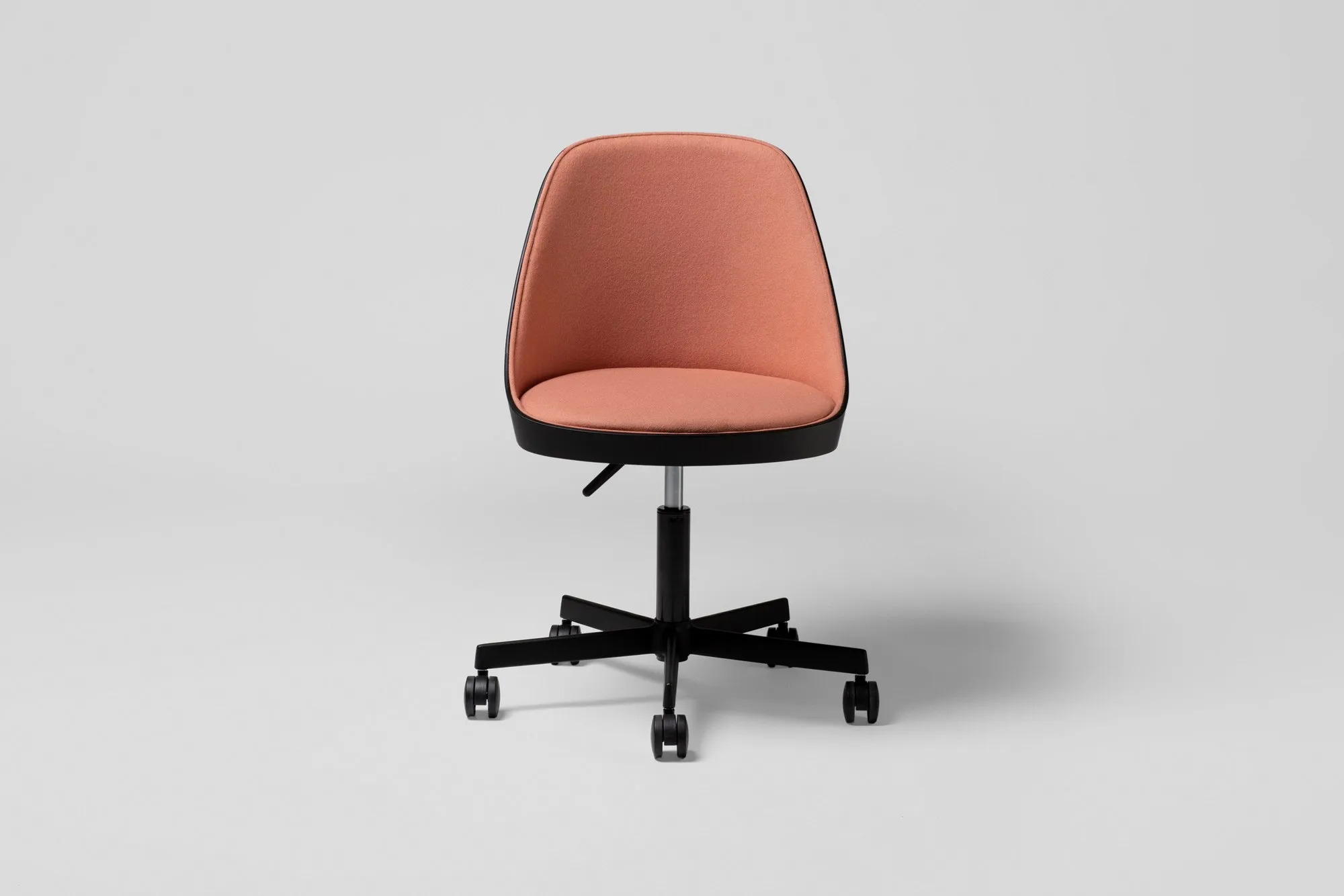 The KAIAK OFFICE chair, designed for corporate offices, coworking spaces, and educational institutions, features a versatile shell crafted from natural or stained oak wood. Available with or without arms, it offers a variety of upholstery options, including fully upholstered, upholstered seat, three-quarters upholstered, and inside upholstery. Its 5-star base can be customized with a choice of colors, seamlessly integrating with modern office desks and modular workstation furniture. This chair combines the elegance of oak with the comfort of upholstery, making it an ideal choice for collaborative workspace furniture. Its design is adaptable to both private and public environments, ensuring it meets the ergonomic needs of diverse professional settings.