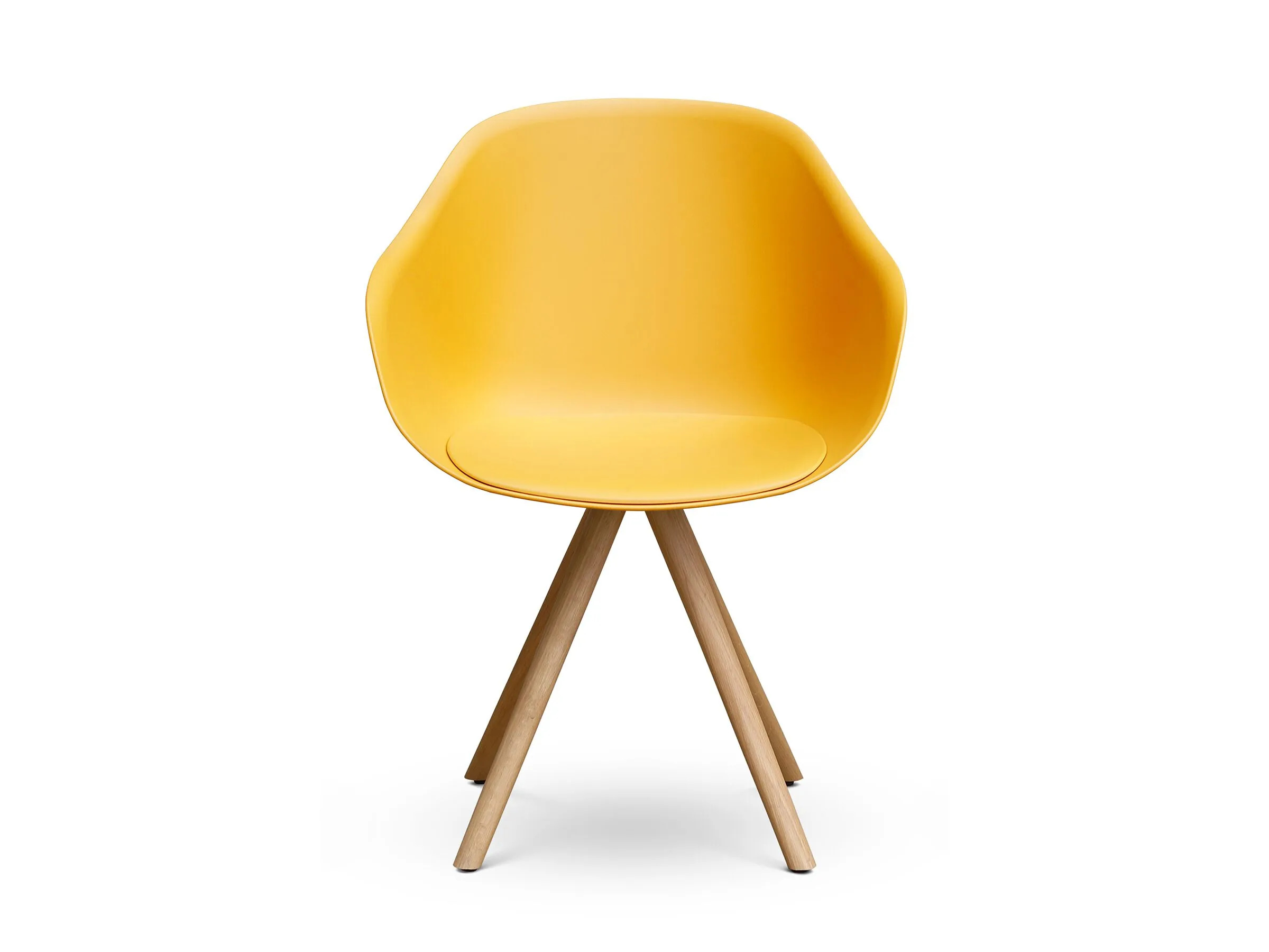 The LORE SPIN WOOD chair is designed with a sturdy 4-legged oak frame, offering a variety of customizable finishes. Options include a polypropylene shell with a choice of a polypropylene or upholstered seat pad, as well as a fully upholstered version. This chair is well-suited for environments such as restaurants, conference rooms, coworking spaces, cafés, event venues, and educational institutions, providing both warmth and comfort. The LORE collection is distinguished by its balance of comfort and elegance, making it a versatile choice for modern design tables and durable seating. Its adaptability allows for different configurations, ensuring it meets the specific needs of dining tables, café chairs, and conference room furniture. The ergonomic and stackable design enhances its practicality in various settings.