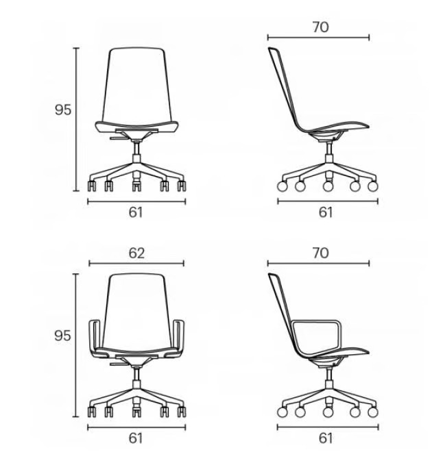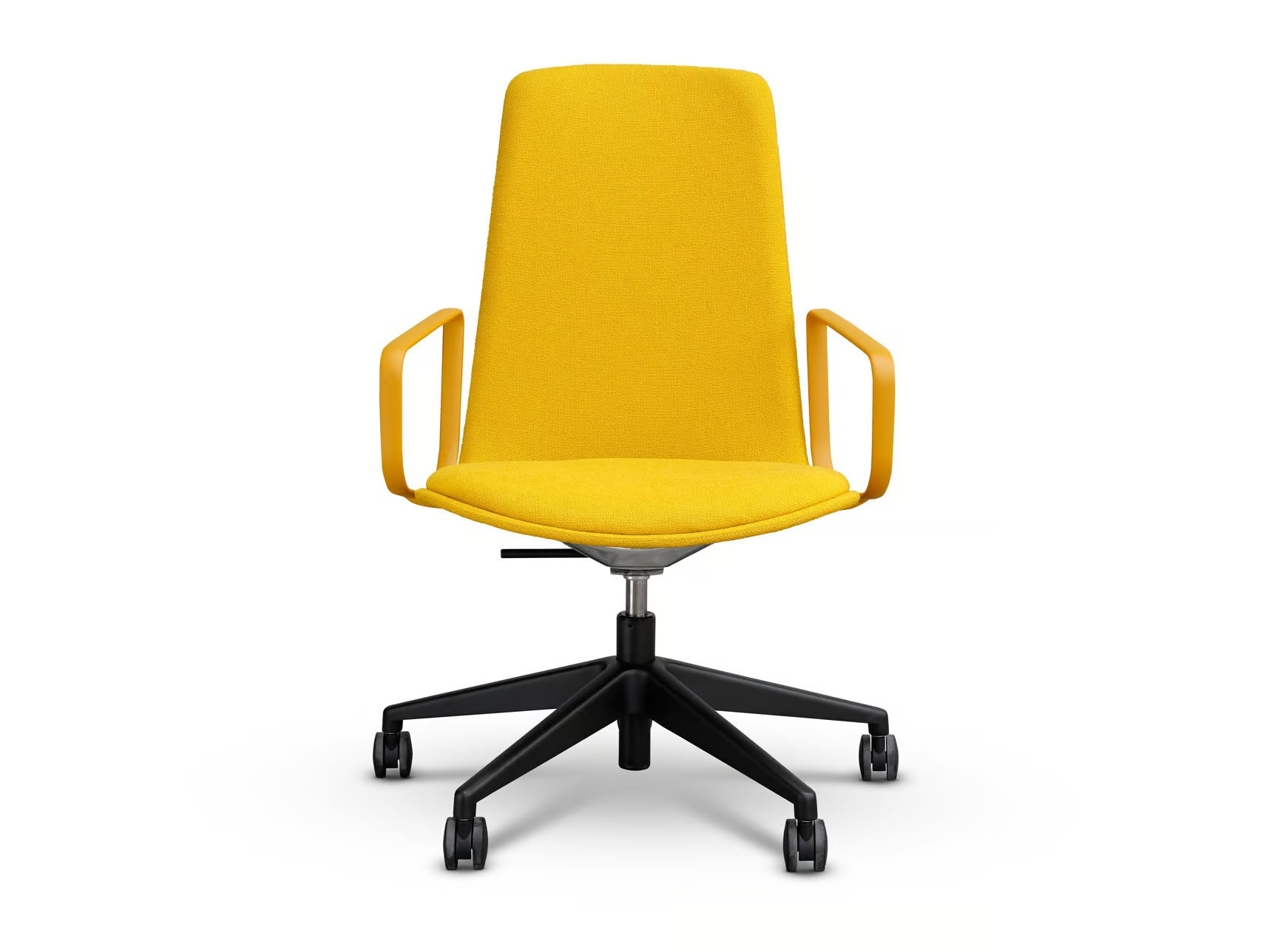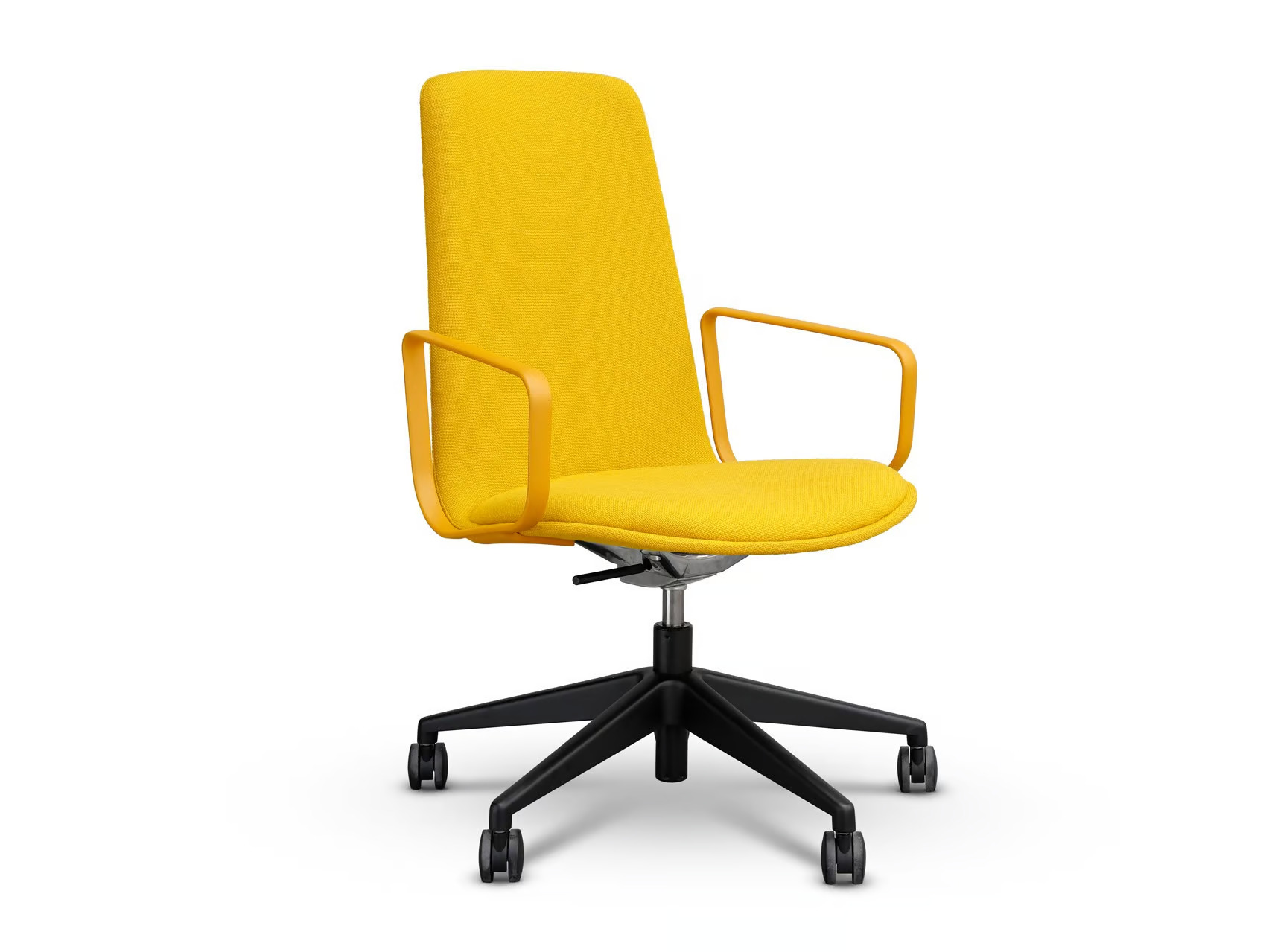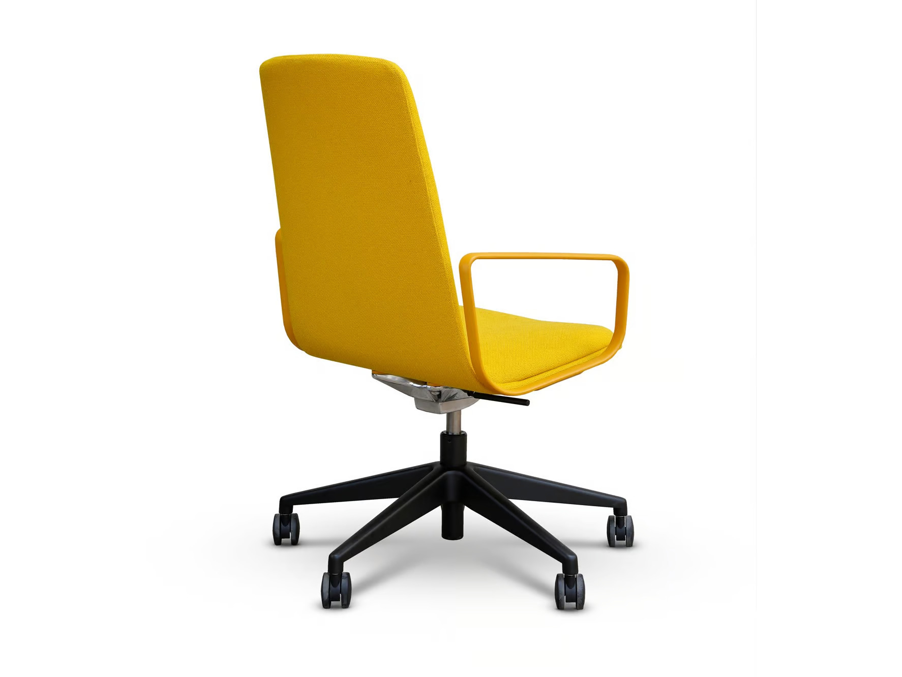 The Lottus Conference chair features a versatile 5-spoke aluminum base, available in polished or lacquered finishes from Enea Design's color palette. Its wooden shell, crafted from oak or birch, offers options for partial or full upholstery, making it suitable for corporate offices, coworking spaces, and educational institutions. Designed for ergonomic support, this chair includes a gas lift and tilt mechanism, with choices between a 4-way castor base or a swivel base on glides. Optional aluminum arms and a tilting or lock-tilting backrest enhance its adaptability. Upholstery options include fabric, leather, or vinyl, ensuring it complements modern office desks and collaborative workspace furniture. The Lottus Conference chair seamlessly integrates into modular workstation furniture setups, providing a sophisticated seating solution for dynamic environments.