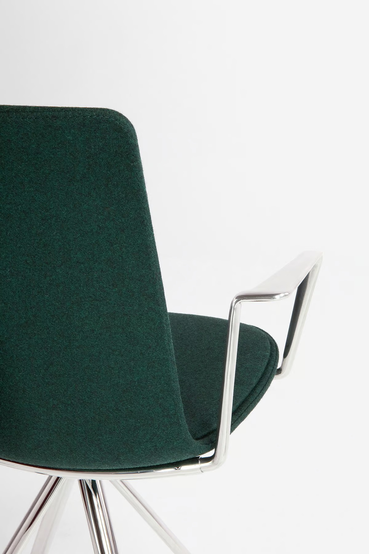 The Lottus High Chair with armrests is designed for versatile use in restaurants, conference rooms, coworking spaces, cafés, event venues, and educational institutions. Its durable seating options include a fixed or swivel 4-legged steel structure, available in chrome or lacquered finishes in various Enea Design colors. The chair offers a modern design with a choice of wooden or polypropylene shells, which can be paired with a polypropylene or upholstered seat pad, or fully upholstered for added comfort. Optional features include wing arms and armrests in aluminum or natural or stained oak. The chair's large, heightened backrest ensures ergonomic support, making it suitable for contemporary working and learning environments. Its stackable design enhances functionality, making it an ideal choice for dining tables and café settings, as well as conference room furniture.
