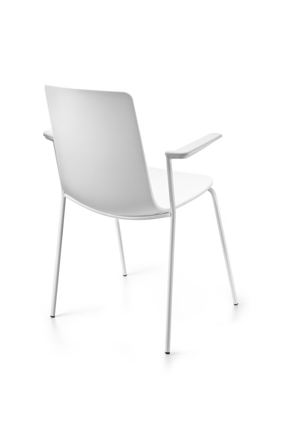 The Lottus High chair with armrests is designed for versatile use in restaurants, conference rooms, coworking spaces, cafés, event venues, and educational institutions. Its steel frame is available in chrome or lacquered finishes, with a choice of Enea Design colors. The chair offers a variety of finishes, including a wooden shell, a polypropylene shell with optional seat padding, or a fully upholstered option. The addition of wing arms enhances its adaptability for various settings. Featuring a tall backrest, this chair provides excellent ergonomics, making it suitable for modern working and learning environments. The Lottus High collection allows for customization by combining different seat and structure options, ensuring it meets diverse needs for durable seating and modern design.