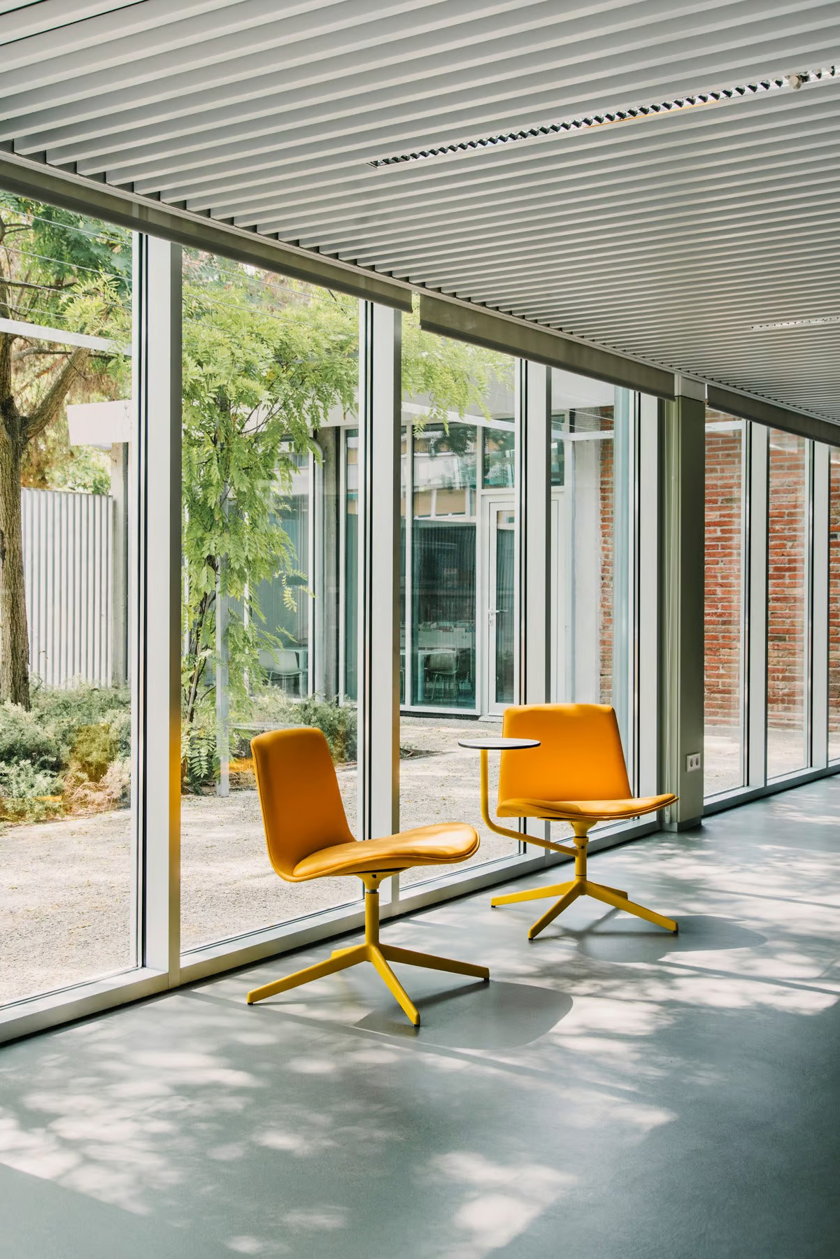 The Lottus Lounge offers a sophisticated seating solution, ideal for hotels, cafés, lounges, and waiting rooms. Featuring a 4-star aluminum base, available in polished or lacquered finishes, this piece exemplifies modern lounge furniture. The shell, crafted from oak or birch wood, can be paired with a simple upholstered seat pad or fully upholstered for added comfort. Its ergonomic design ensures a comfortable seating experience, while optional aluminum arms and a writing table enhance its functionality for work and learning environments. This versatile piece is perfect for residential interior designers seeking customizable sofa designs and compact furniture for small spaces. The Lottus Lounge seamlessly integrates into any setting, offering both luxury and practicality.