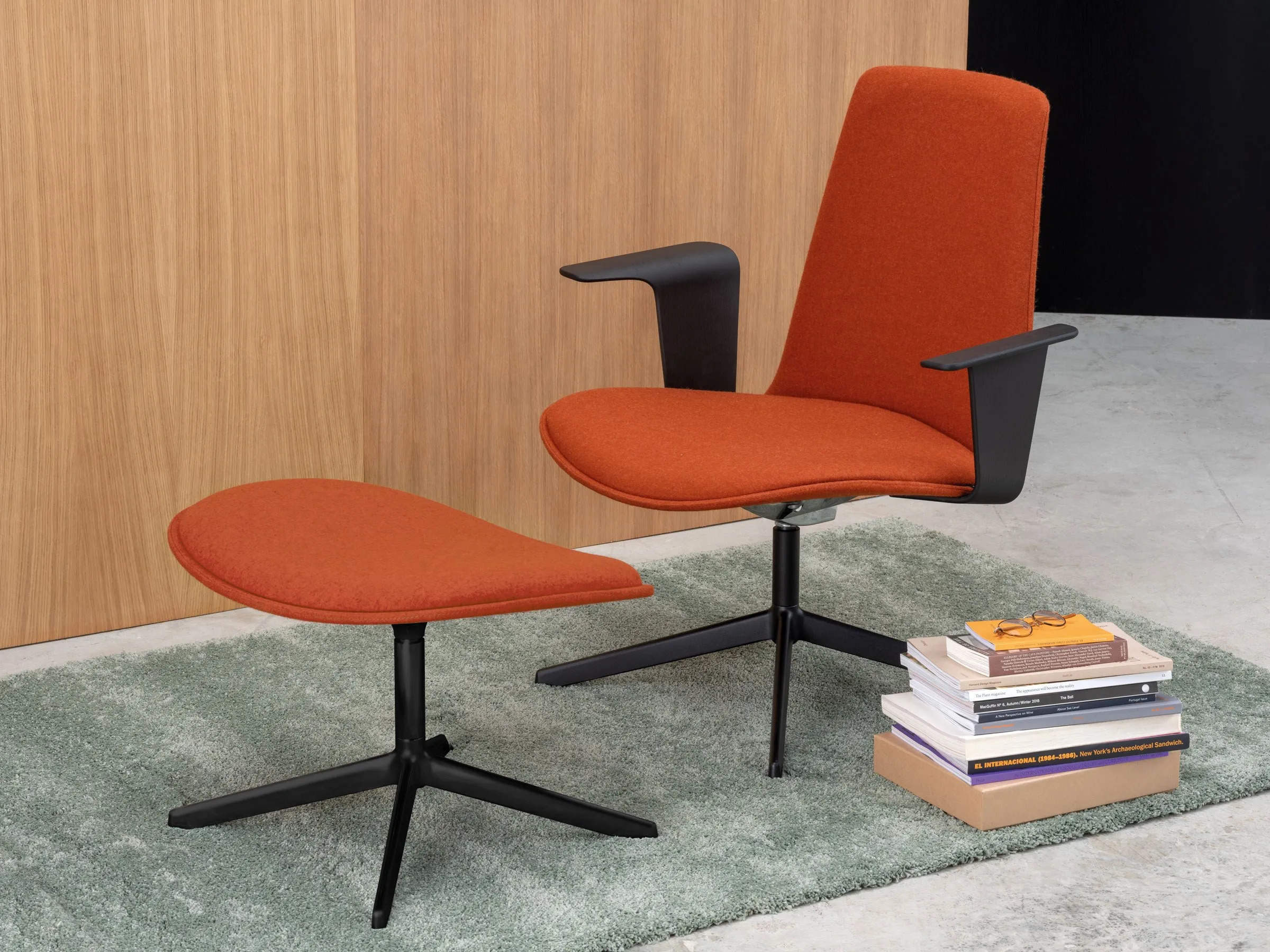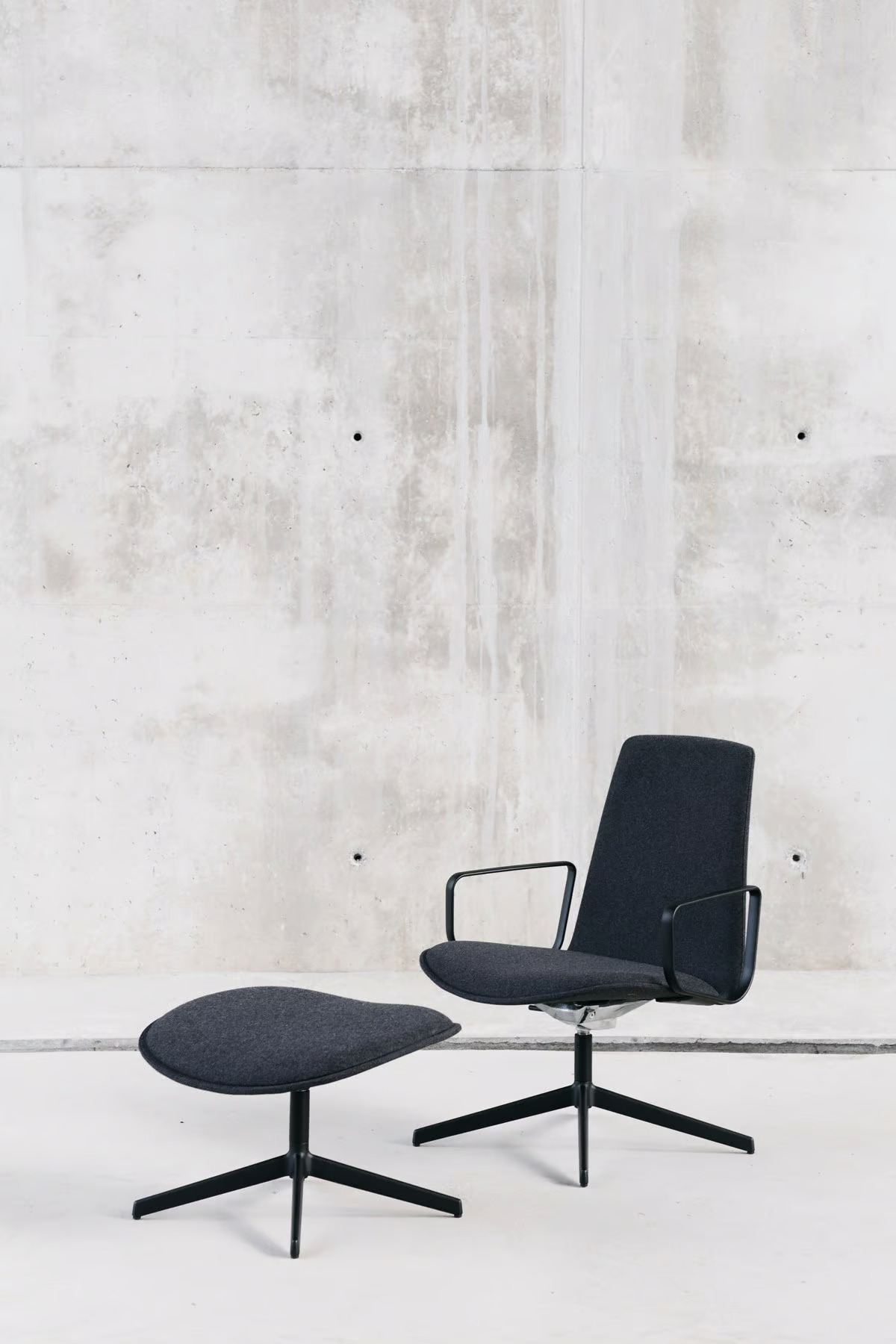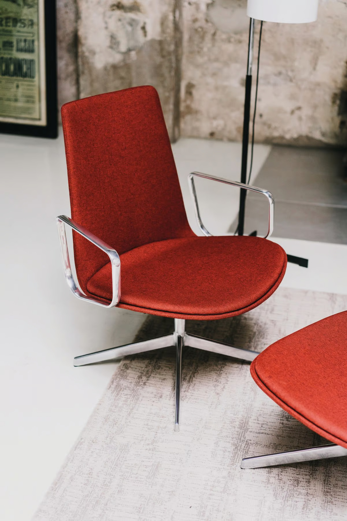 The Lottus Lounge High offers a sophisticated seating solution ideal for hotels, cafés, lounges, and waiting rooms. This modern lounge furniture piece features a choice between a fixed or swivel design, supported by a 4-star aluminum base that can be polished or lacquered in a variety of Enea Design colors. Its fully upholstered shell provides enhanced comfort with a higher backrest, and the option to add aluminum or natural and stained oak wooden arms. An available ottoman complements the design, enhancing its comfort. This luxury armchair is perfect for residential interior designers seeking customizable sofa designs and compact furniture for small spaces.