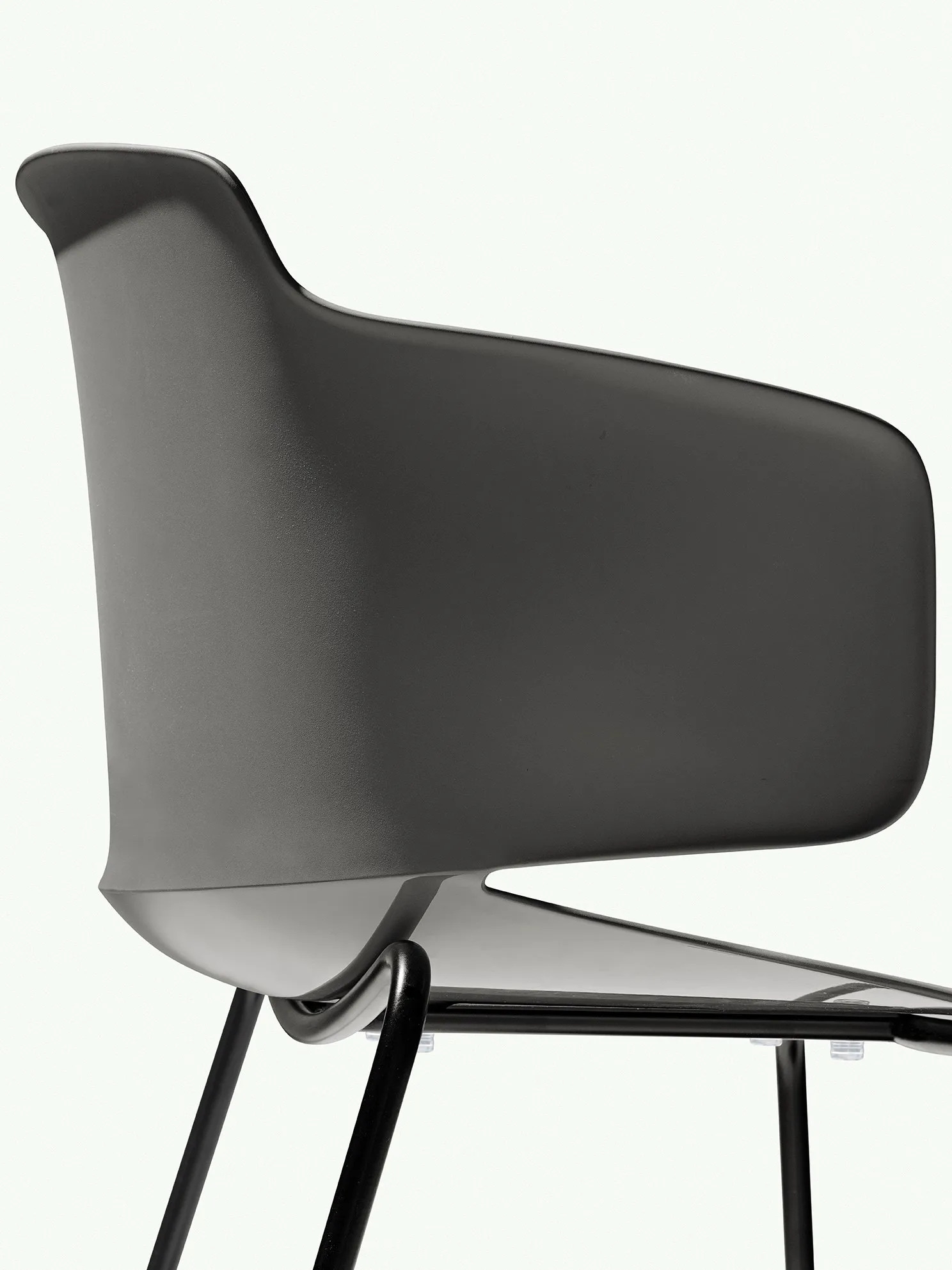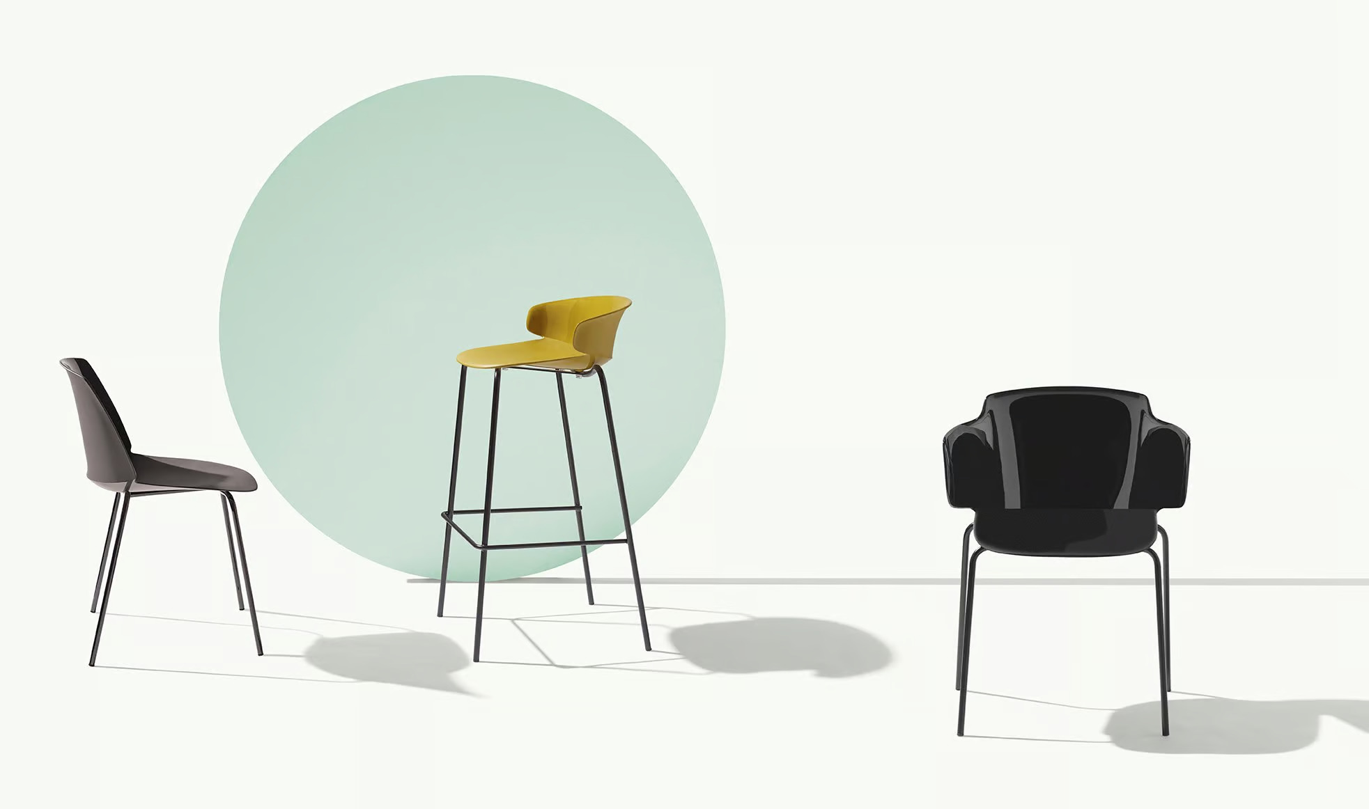 The CLASSY 1091 armchair features a robust steel frame with four legs and a polypropylene shell, designed for both durability and comfort. Its stackable design, accommodating up to four chairs, makes it ideal for dynamic environments like restaurants, conference rooms, coworking spaces, cafés, event venues, and educational institutions. The chair's modern design is characterized by a unique blend of matte and glossy finishes, enhancing its aesthetic appeal. The collection includes a variety of seating options, such as chairs with or without armrests and stools, all available with an optional fabric-upholstered seat. This versatile range offers numerous configurations suitable for both indoor and outdoor settings, making it a comprehensive choice for diverse seating needs.