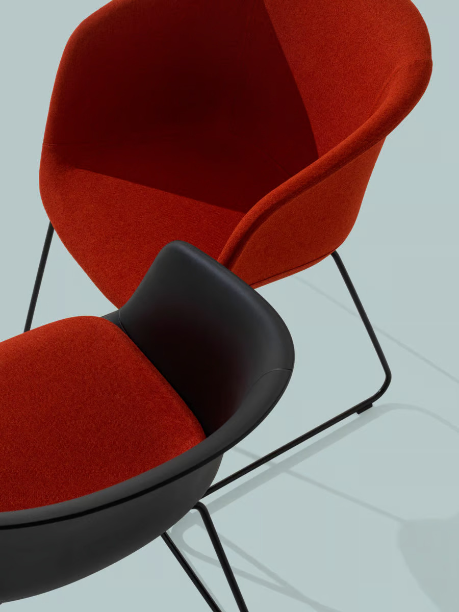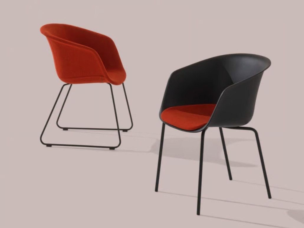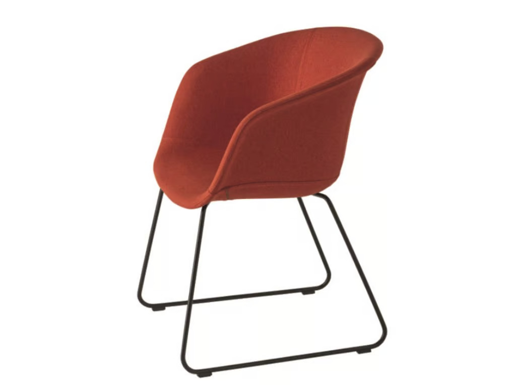 The DUNK 1192M armchair offers a versatile seating solution for restaurants, conference rooms, coworking spaces, cafés, event venues, and educational institutions. Featuring a sled steel frame and a closed, upholstered shell, this chair combines modern design with comfort. Its polypropylene shell is available in two styles: with or without holes, and it comes in various frame options, including four wooden legs and rocking legs. The marsala-colored version is crafted from recycled polypropylene, emphasizing sustainability. This chair is designed for durability and ergonomic support, making it ideal for dining tables and conference room furniture. Additionally, the stackable design ensures easy storage, enhancing its practicality for dynamic environments.